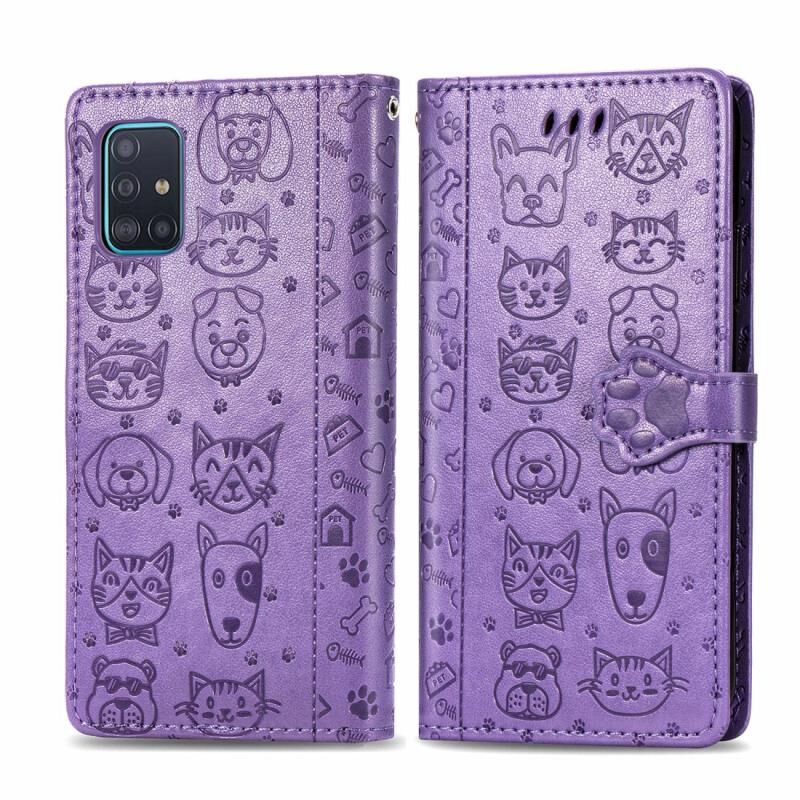 Θήκη δέρματος οριζόντιας αναδίπλωσης με ανάγλυφα σχέδια γατούλας και σκυλάκι για Galaxy A51, με βάση στήριξης / υποδοχή κάρτας / πορτοφόλι / κορδόνι (Χρυσό Ρόδι)