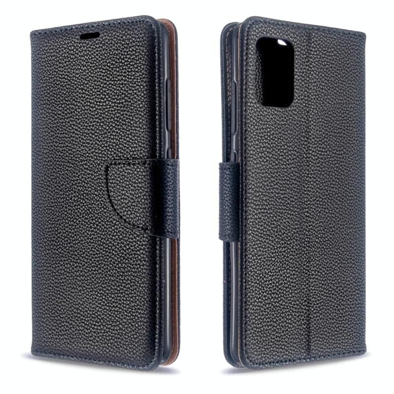 Για Galaxy A51 Litchi υφή καθαρό χρώμα οριζόντια Flip PU δέρμα υπόθεση με θήκη & υποδοχές για κάρτες & πορτοφόλι & κορδόνι (μαύρο)
