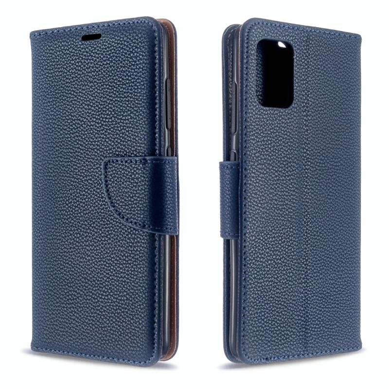 Για Galaxy A51 Litchi υφή καθαρό χρώμα οριζόντια Flip PU δέρμα υπόθεση με θήκη & υποδοχές για κάρτες & πορτοφόλι & κορδόνι (Σκούρο μπλε)