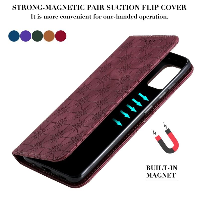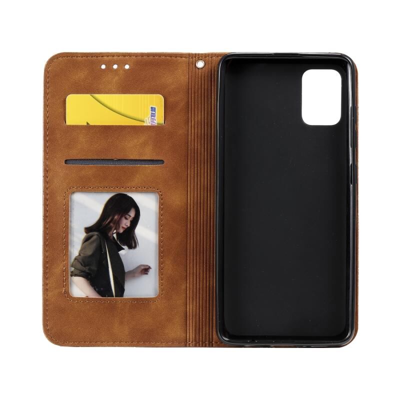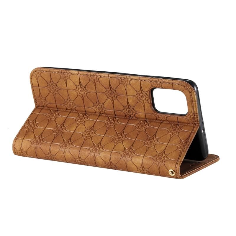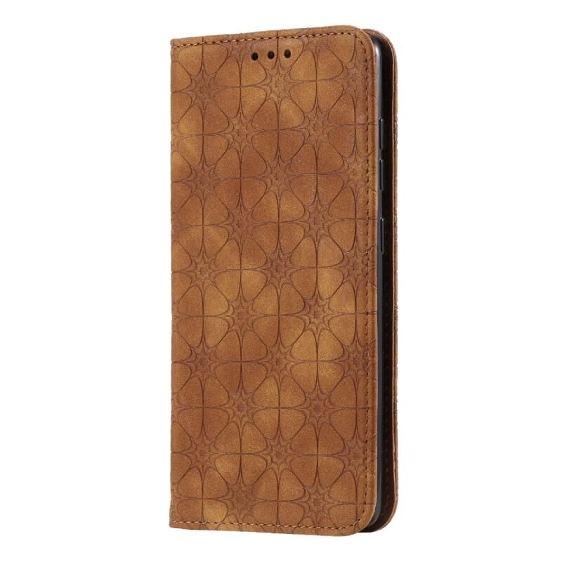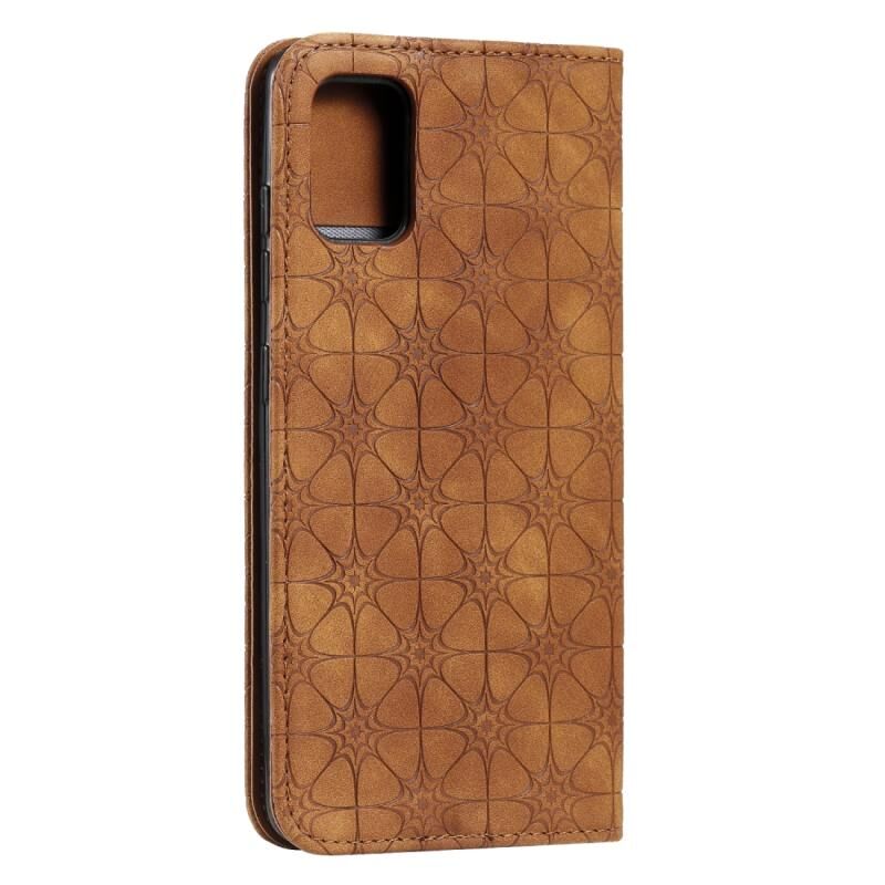 Θήκη δέρματος με μαγνητικό κλείσιμο, οριζόντια, με ανάγλυφο σχέδιο τυχερών λουλουδιών για Galaxy A51, με βάση στήριξης & θήκες για κάρτες (Καφέ)