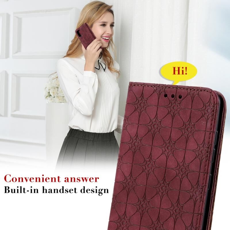 Θήκη δέρματος με μαγνητικό κλείσιμο, οριζόντια, με ανάγλυφο σχέδιο τυχερών λουλουδιών για Galaxy A51, με βάση στήριξης & θήκες για κάρτες (Σκούρο Μπλε)