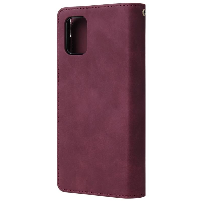 Για το Galaxy A51 Πολυλειτουργική οριζόντια δερμάτινη θήκη Flip, με υποδοχή κάρτας & θήκη & φερμουάρ πορτοφόλι & κορνίζα φωτογραφιών (κόκκινο κρασί)