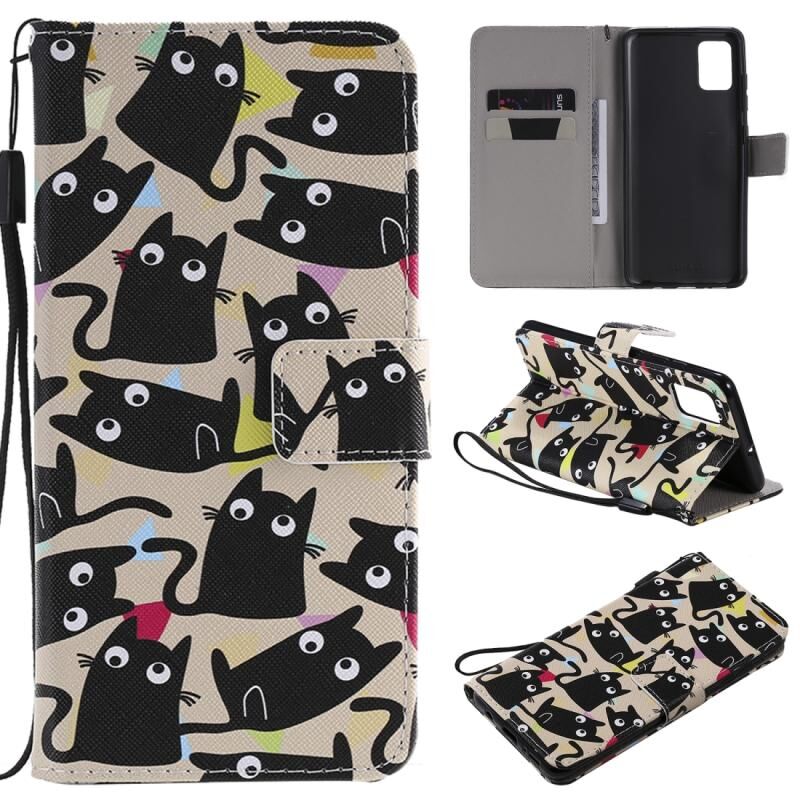 Θήκη για Galaxy A51, ζωγραφισμένη, οριζόντια αναδιπλούμενη από δέρμα με βάση στήριξης & θήκη για κάρτες & κορδόνι (Γάτα)