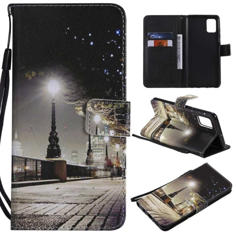 Θήκη δέρματος οριζόντιας αναδίπλωσης για Galaxy A51 με βάση στήριξης & θήκη καρτών & κορδόνι (Αστικό Τοπίο)