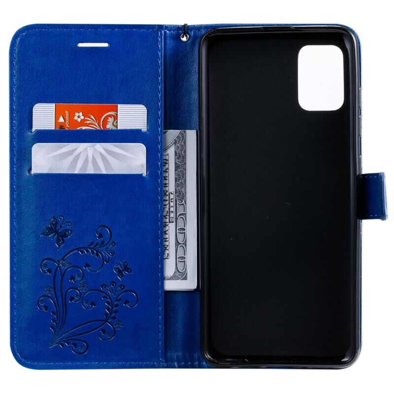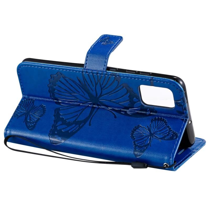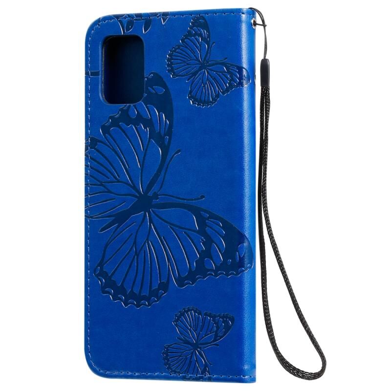 Θήκη για Galaxy A51, με εκτύπωση πεταλούδας, οριζόντια, από δερματίνη PU με βάση στήριξης, θήκες για κάρτες, πορτοφόλι & λουρί (Μπλε)