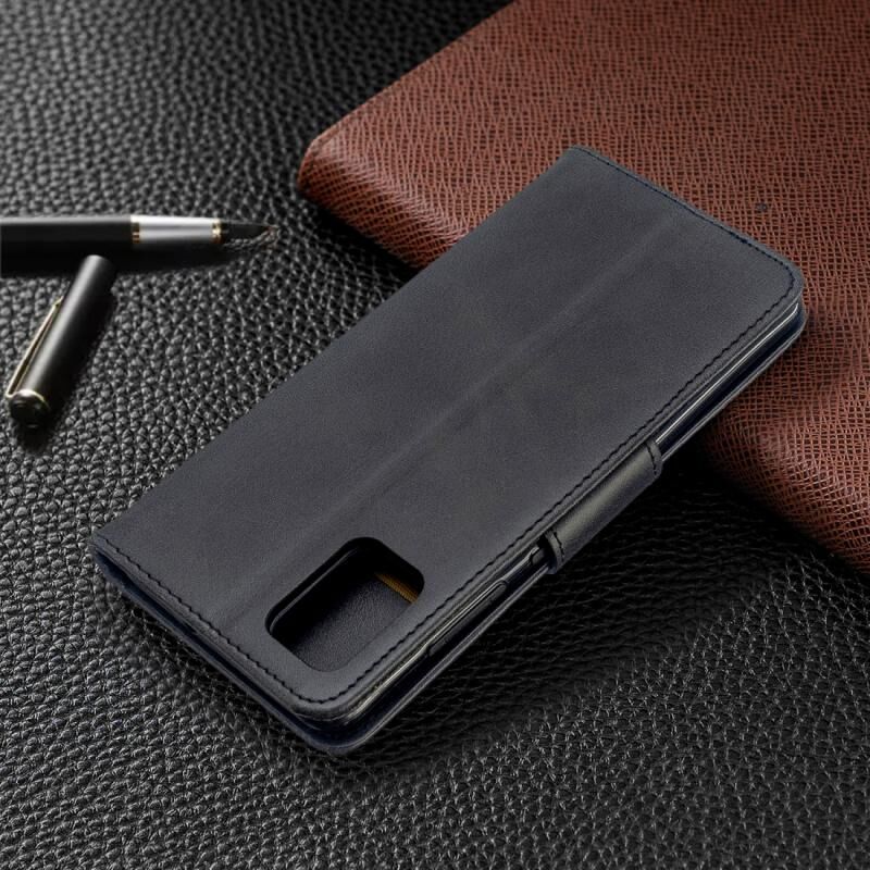 Για Galaxy A51 Retro Lambskin υφή καθαρό χρώμα οριζόντια Flip PU δέρμα υπόθεση με θήκη & υποδοχές για κάρτες & πορτοφόλι & κορδόνι (μαύρο)