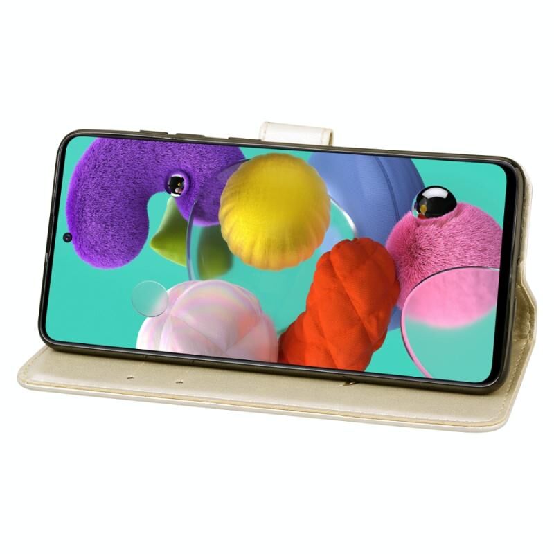 Θήκη για Galaxy A51 Rose Embossed Οριζόντια Δερμάτινη PU με Θήκη & Θήκες Καρτών & Πορτοφόλι (Χρυσός)