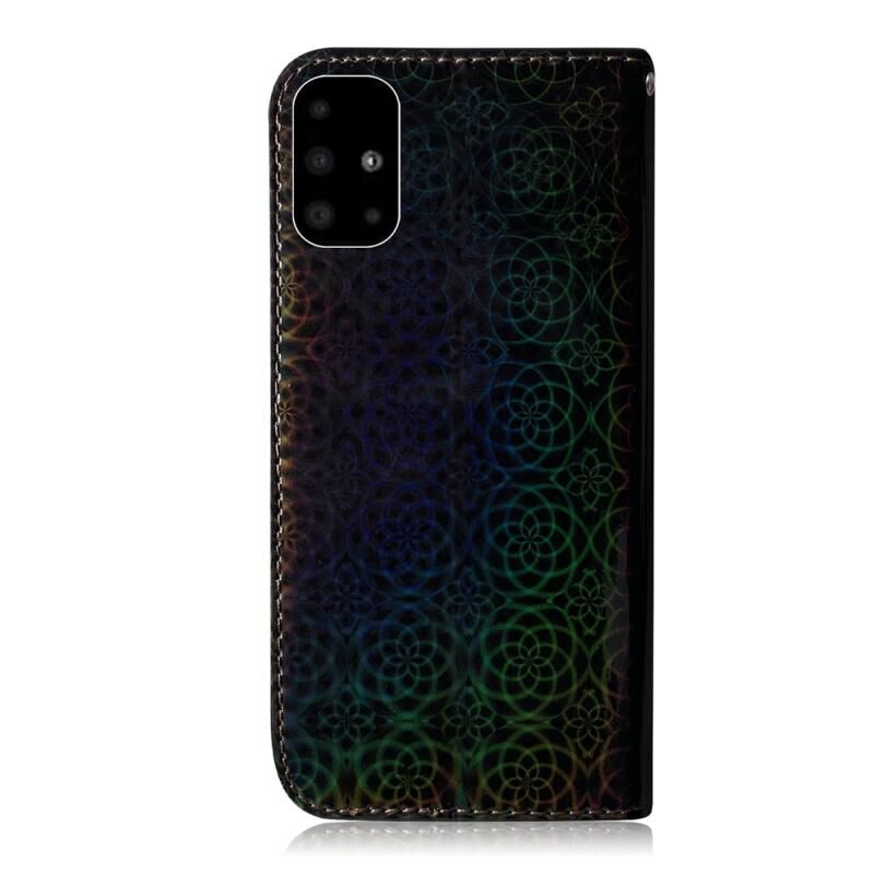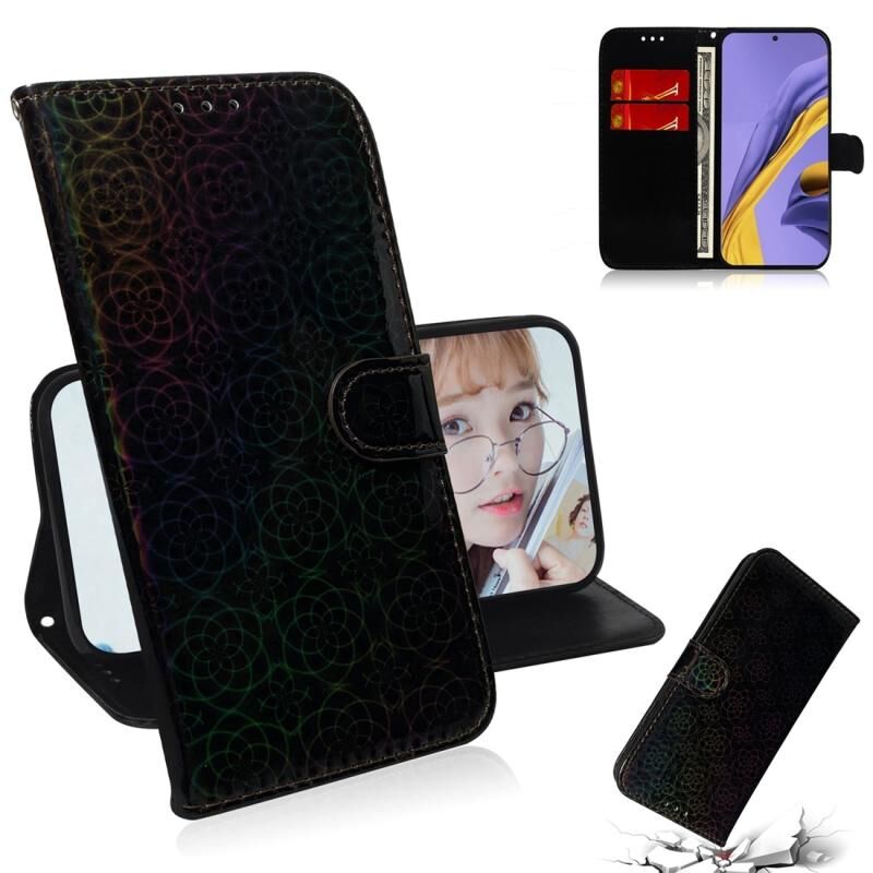 Για Galaxy A51 Αμιγές χρώμα πολύχρωμο μαγνητικό πόρπη οριζόντια Flip PU δέρμα υπόθεση με κάτοχο & υποδοχές για κάρτες & πορτοφόλι & Lanyard (Μαύρο)
