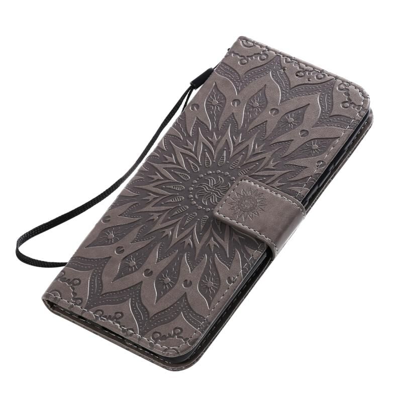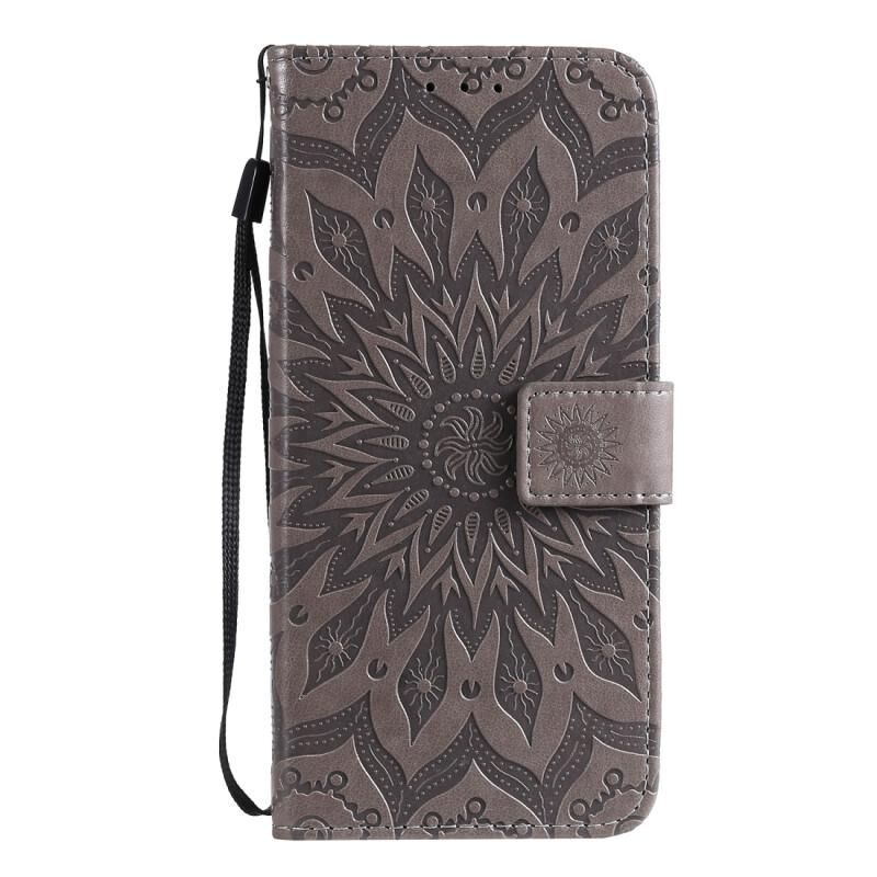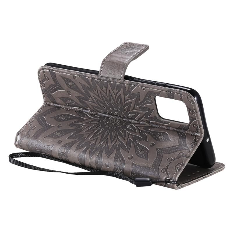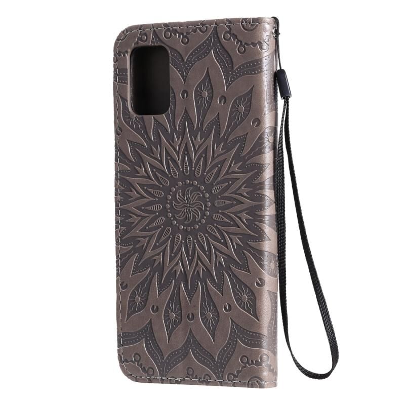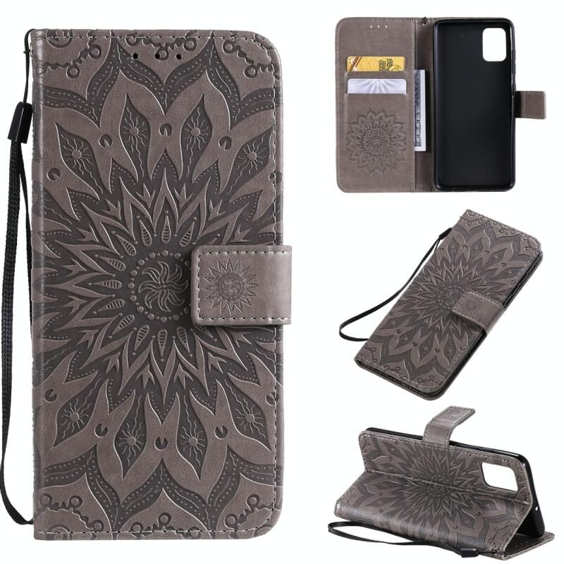 Για Galaxy A51 Sun Print Οριζόντια Flip προστατευτική θήκη με θήκη για κάρτες & υποδοχές & πορτοφόλι (γκρι)