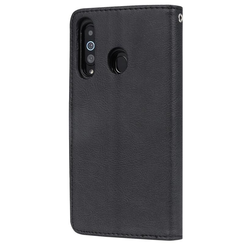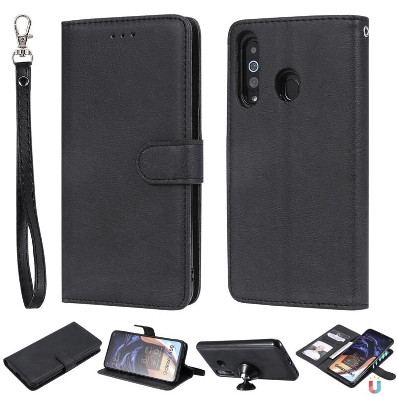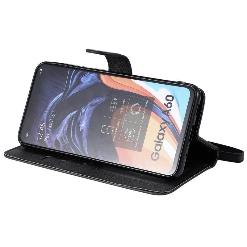 Για Galaxy A60 Αμιγές χρώμα οριζόντια Flip προστατευτική θήκη με θήκη & υποδοχές για κάρτες & πορτοφόλι & πλαίσιο φωτογραφιών & κορδόνι (Μαύρο)