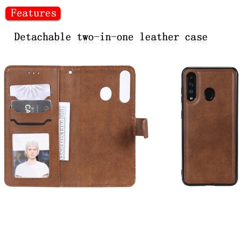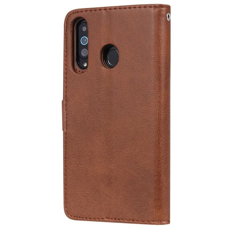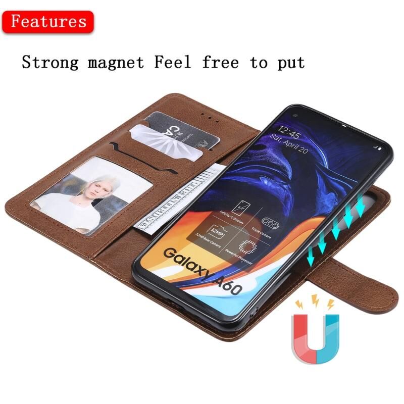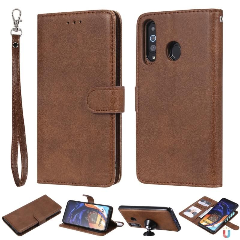 Για Galaxy A60 Αμιγές χρώμα οριζόντια Flip προστατευτική θήκη με θήκη & υποδοχές για κάρτες & πορτοφόλι & πλαίσιο φωτογραφιών & κορδόνι (Καφέ)