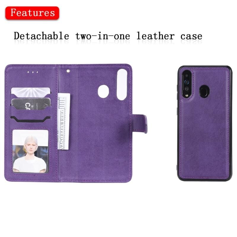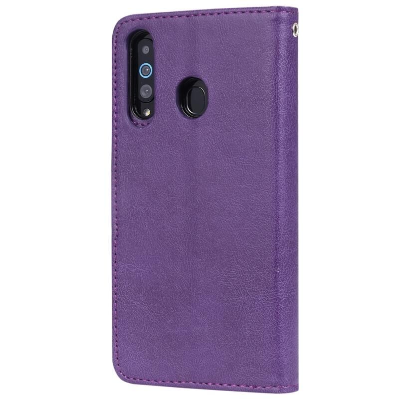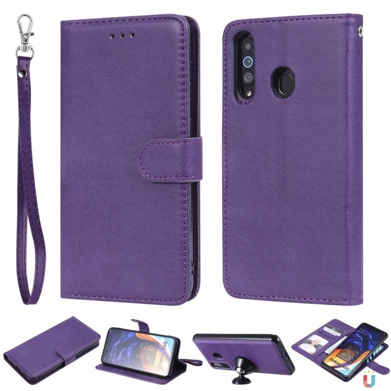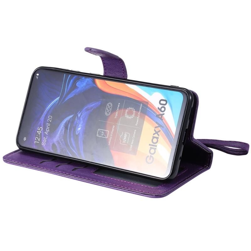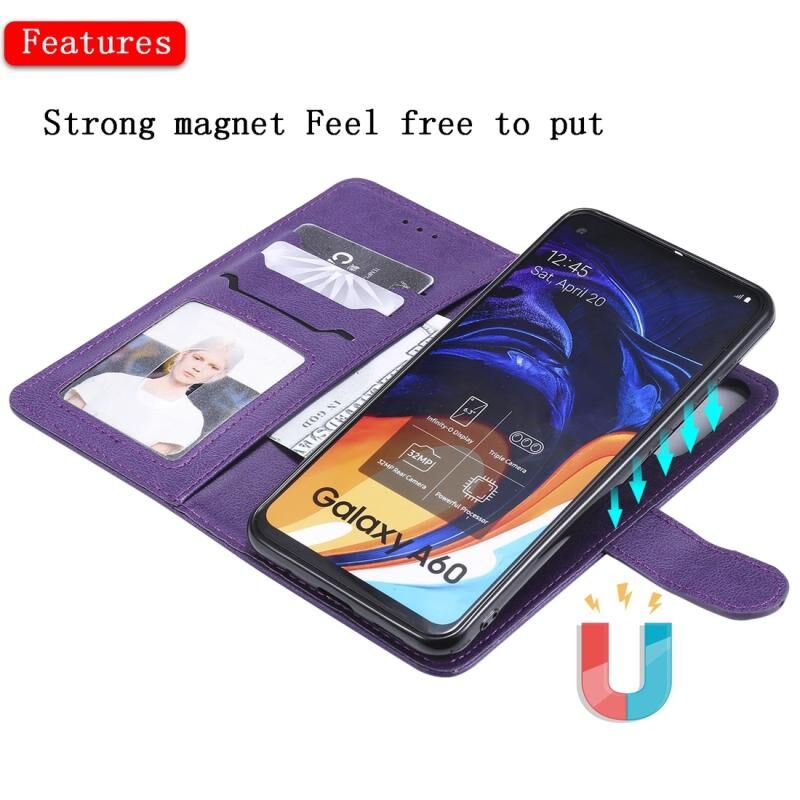 Για Galaxy A60 Αμιγές χρώμα οριζόντια Flip προστατευτική θήκη με θήκη & υποδοχές για κάρτες & πορτοφόλι & πλαίσιο φωτογραφιών & κορδόνι (Μωβ)