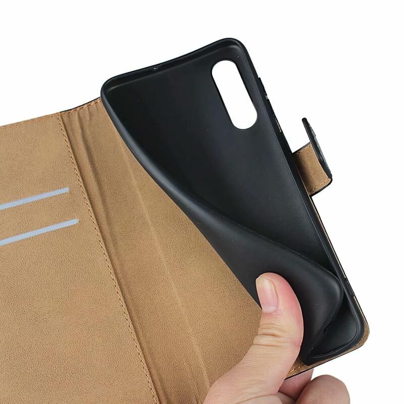 Για Galaxy A70/A70S Δερμάτινη οριζόντια αναδιπλούμενη θήκη με μαγνητικό κούμπωμα και βραχίονα και υποδοχή κάρτας και πορτοφόλι (Μαύρο)