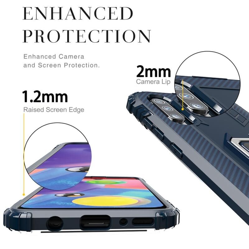 Για Galaxy A70 Carbon Fiber Προστατευτική θήκη με 360 μοίρες περιστρεφόμενη θήκη δακτυλίου (μπλε)