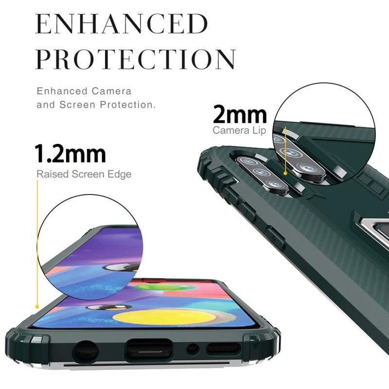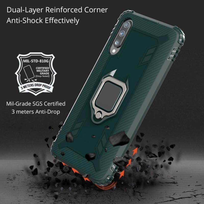 Για Galaxy A70 Carbon Fiber Προστατευτική θήκη με 360 μοίρες περιστρεφόμενη θήκη δακτυλίου (πράσινο)
