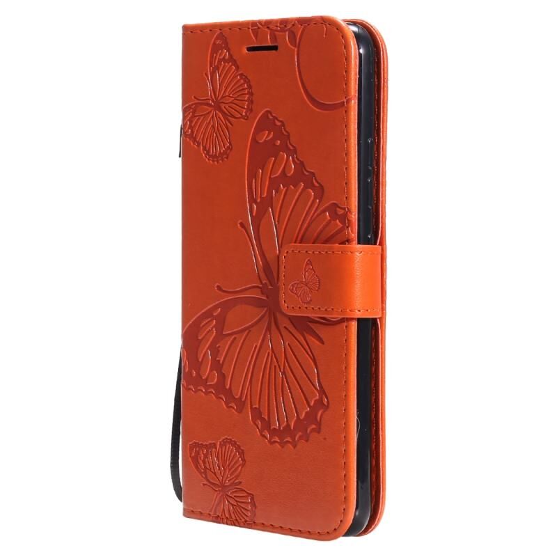 Θήκη δέρματος οριζόντιας αναδίπλωσης με ανάγλυφο σχέδιο 3D πεταλούδων για Galaxy A70e, με βάση, θήκη καρτών, πορτοφόλι και λουρί (Πορτοκαλί)