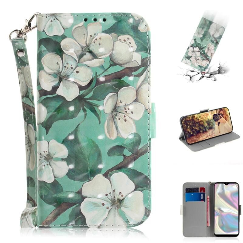Θήκη δέρματος με οριζόντιο άνοιγμα 3D για Galaxy A70e με βάση στήριξης, θήκη καρτών, πορτοφόλι και λουρί (υδατογραφικά λουλούδια)