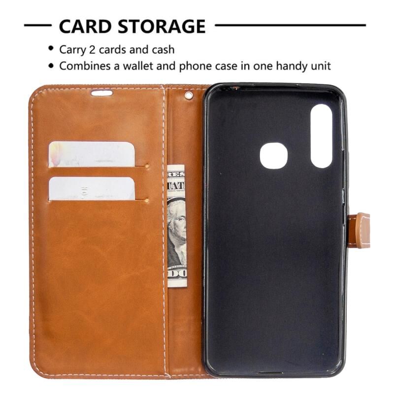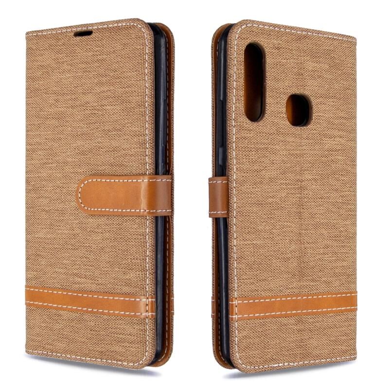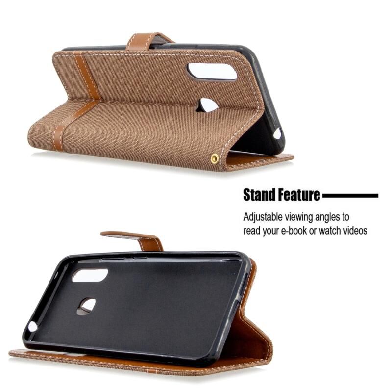 Για το Galaxy A70e Χρώμα ταιριάζει με Denim υφή οριζόντια Flip δερμάτινη θήκη με κάτοχο & υποδοχές για κάρτες & πορτοφόλι & κορδόνι (καφέ)