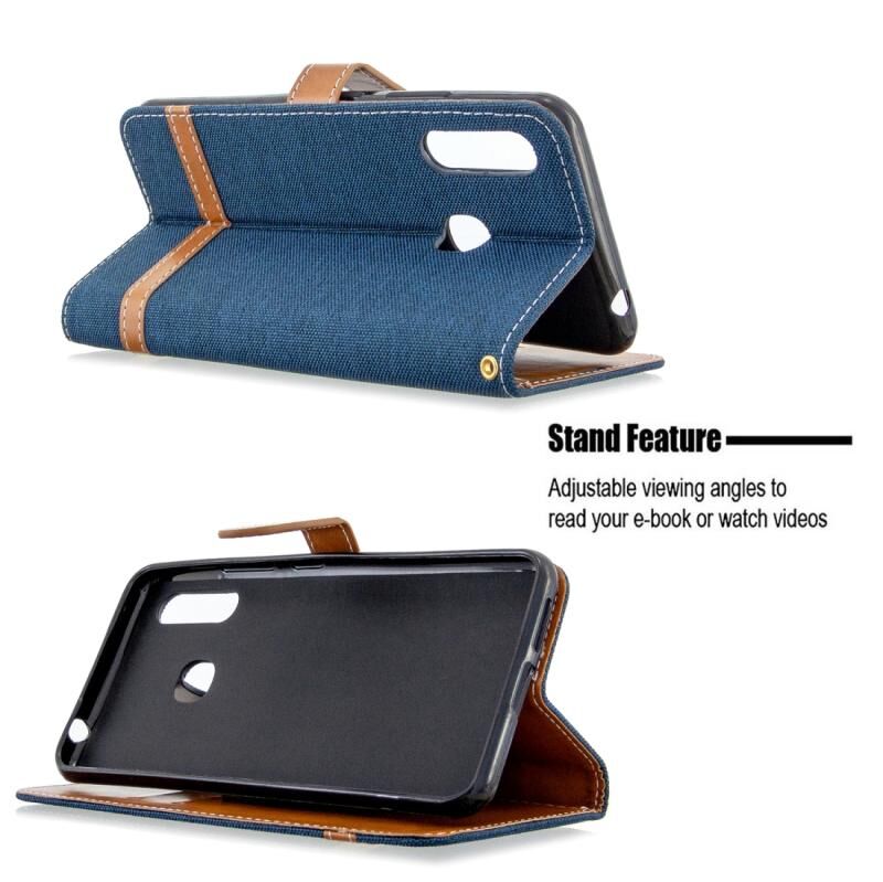 Για Galaxy A70e Χρώμα ταιριάζει με Denim υφή οριζόντια Flip δερμάτινη θήκη με θήκη & υποδοχές για κάρτες & πορτοφόλι & κορδόνι (σκούρο μπλε)