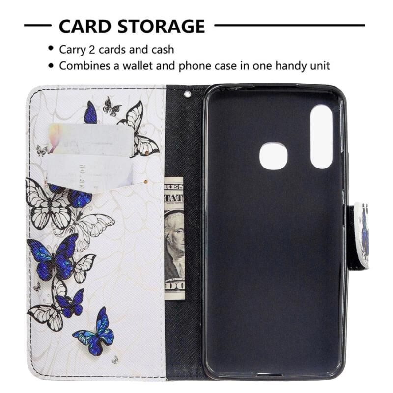 Θήκη δέρματος οριζόντιας αναδίπλωσης με σχέδια και χρώματα για Galaxy A70e με βάση για κάρτες και πορτοφόλι (Κόκκινο)