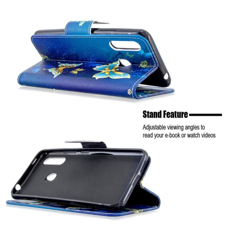 Θήκη δέρματος οριζόντιας αναδίπλωσης με σχέδιο και χρώματα για Galaxy A70e με βάση για κάρτες και πορτοφόλι (Χρυσή Πεταλούδα)