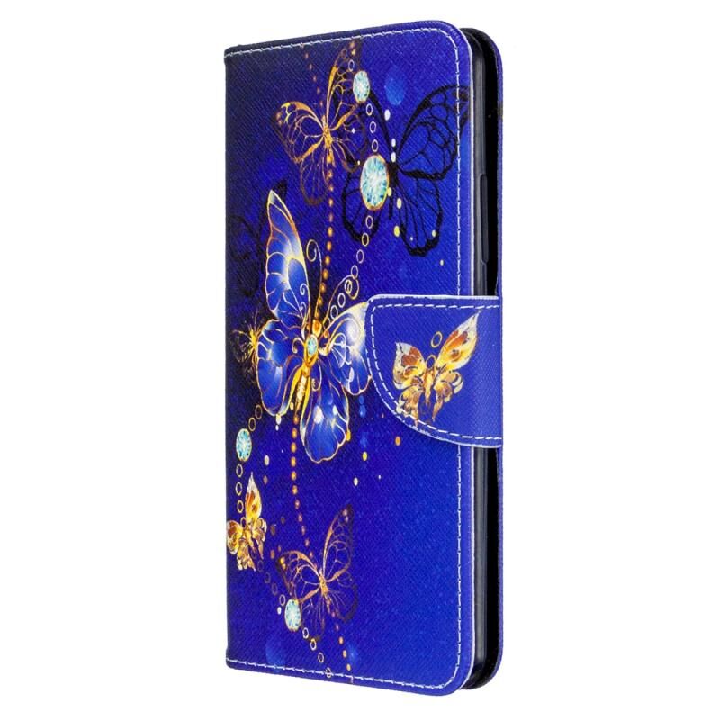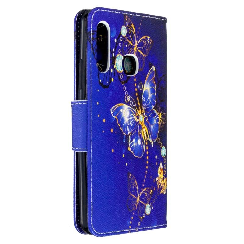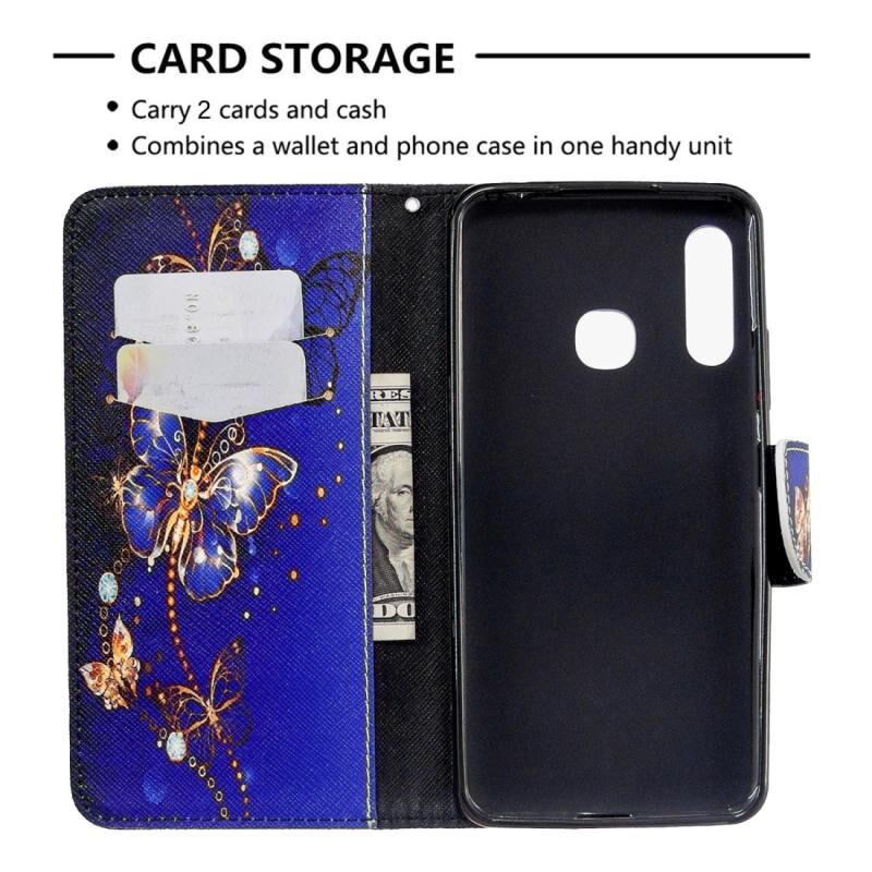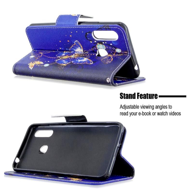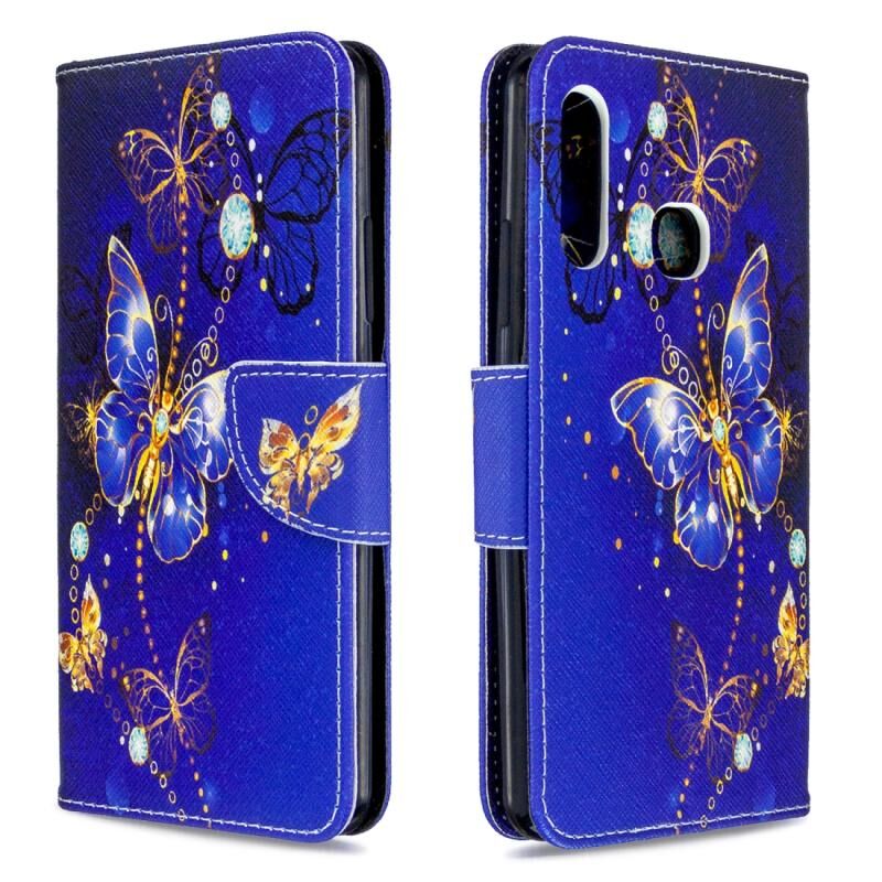 Θήκη δέρματος οριζόντιας αναδίπλωσης με σχέδιο και χρώματα για Galaxy A70e με βάση για κάρτες και πορτοφόλι (Μωβ Πεταλούδα)