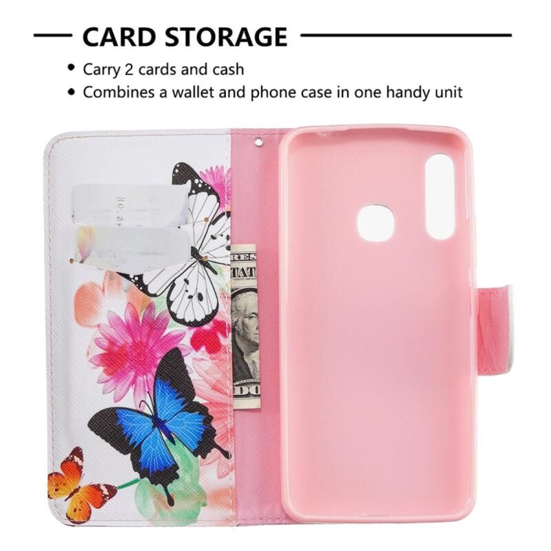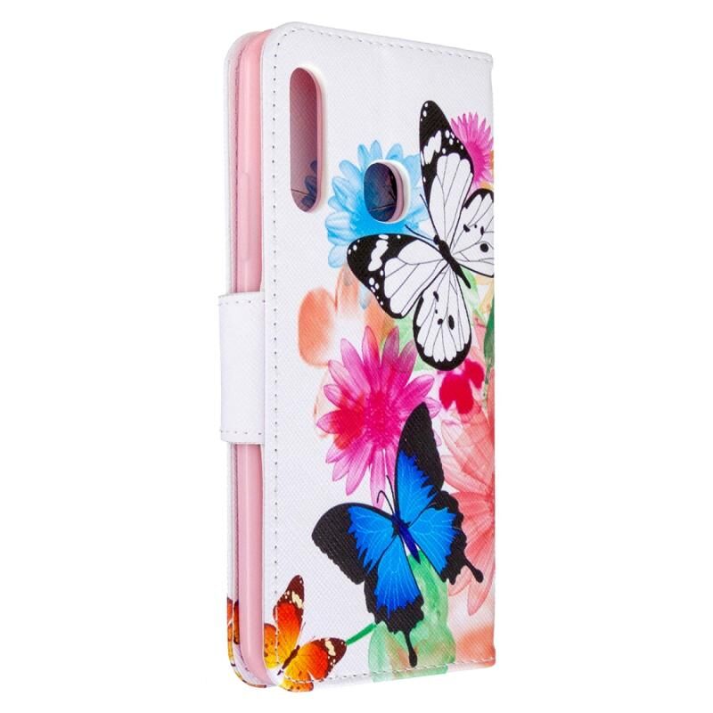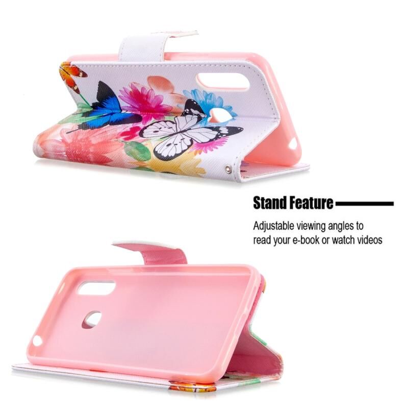 Θήκη δέρματος οριζόντιας αναδίπλωσης με σχέδιο πολύχρωμης ζωγραφικής για Galaxy A70e με βάση & υποδοχές καρτών & πορτοφόλι (Κόκκινο)