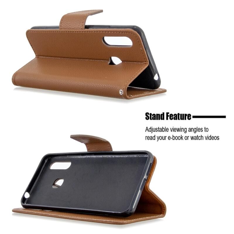 Για Galaxy A70e Καθαρό χρώμα οριζόντια Flip PU δερμάτινη θήκη με θήκη για κάρτες & υποδοχές & πορτοφόλι & κορδόνι (Καφέ)
