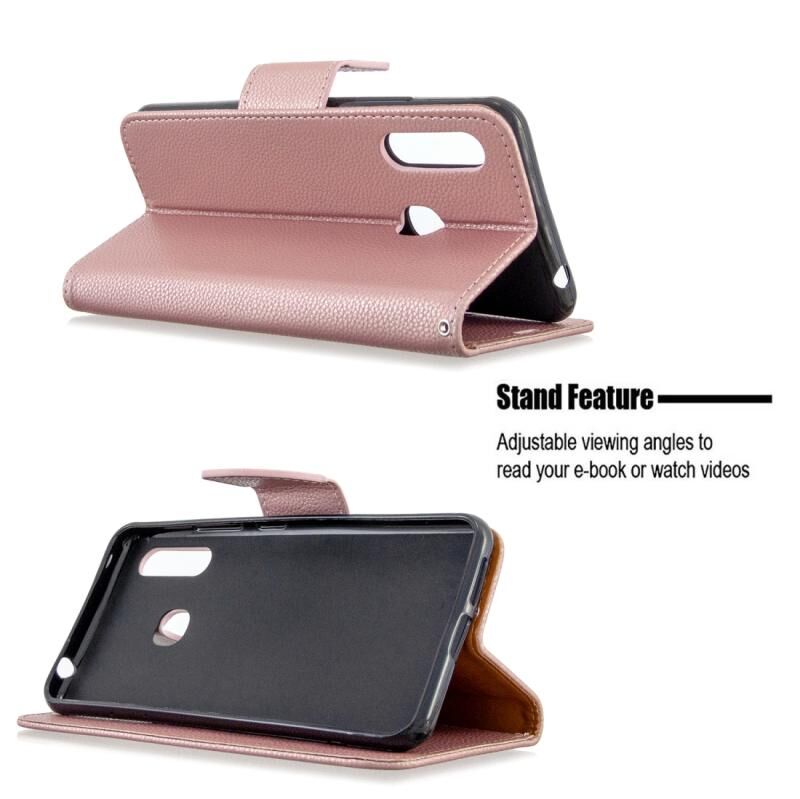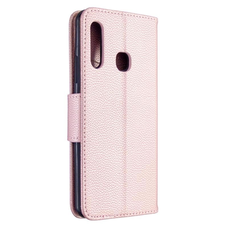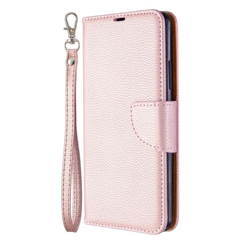Για Galaxy A70e Καθαρό χρώμα οριζόντια Flip PU δερμάτινη θήκη με θήκη για κάρτες & υποδοχές & πορτοφόλι & κορδόνι (Ροζ χρυσός)