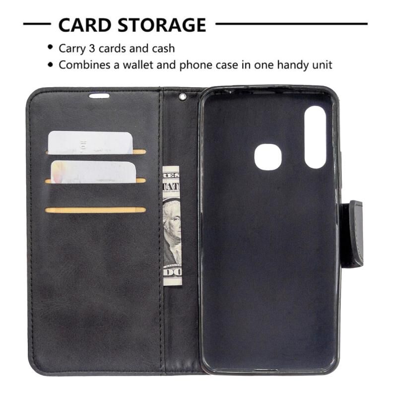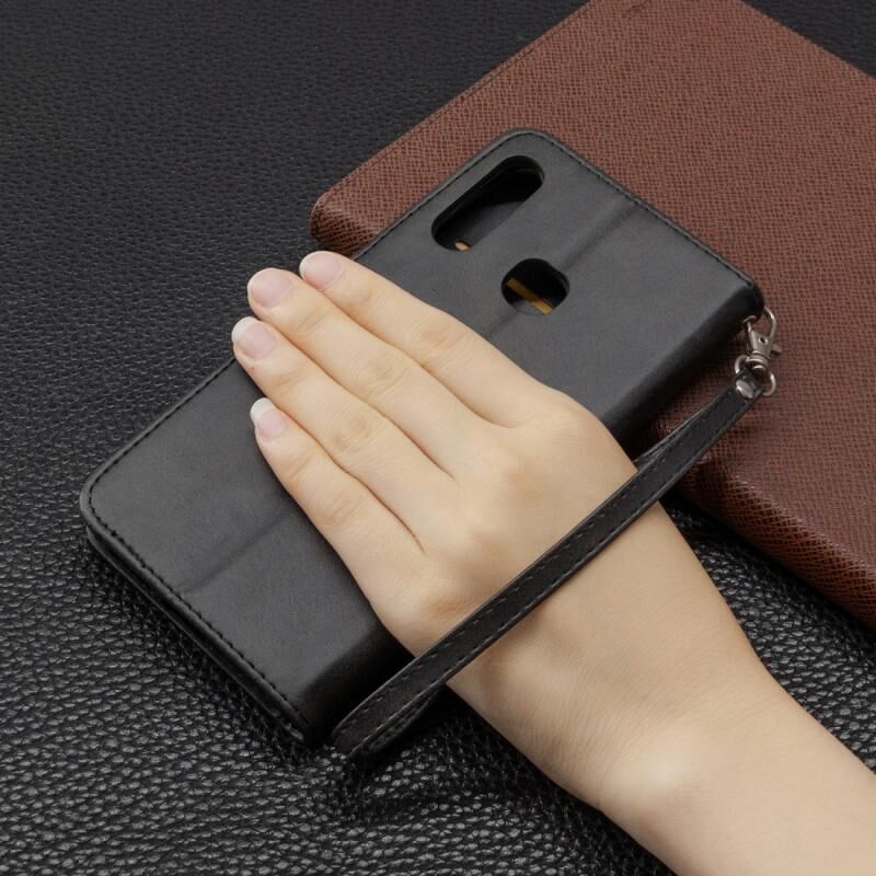 Για Galaxy A70e Ρετρό Lambskin υφή καθαρό χρώμα οριζόντια Flip PU δέρμα υπόθεση με θήκη & υποδοχές για κάρτες & πορτοφόλι & κορδόνι (Μαύρο)