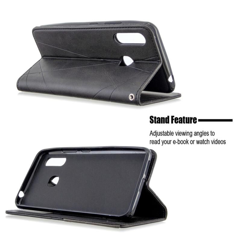 Για Galaxy A70e Rhombus υφή Οριζόντια Flip μαγνητική δερμάτινη θήκη με θήκη & υποδοχές για κάρτες & πορτοφόλι (Μαύρο)