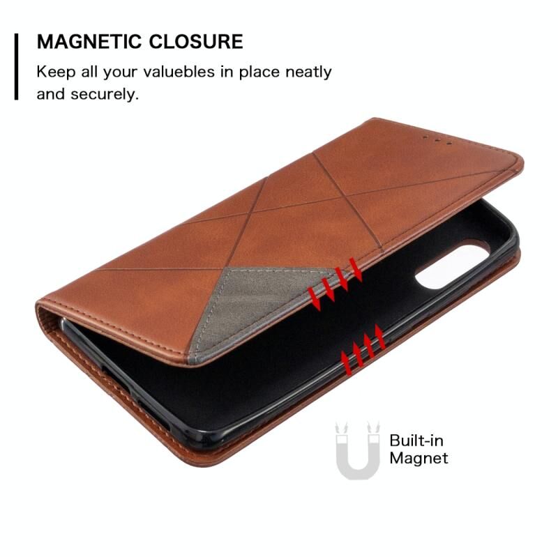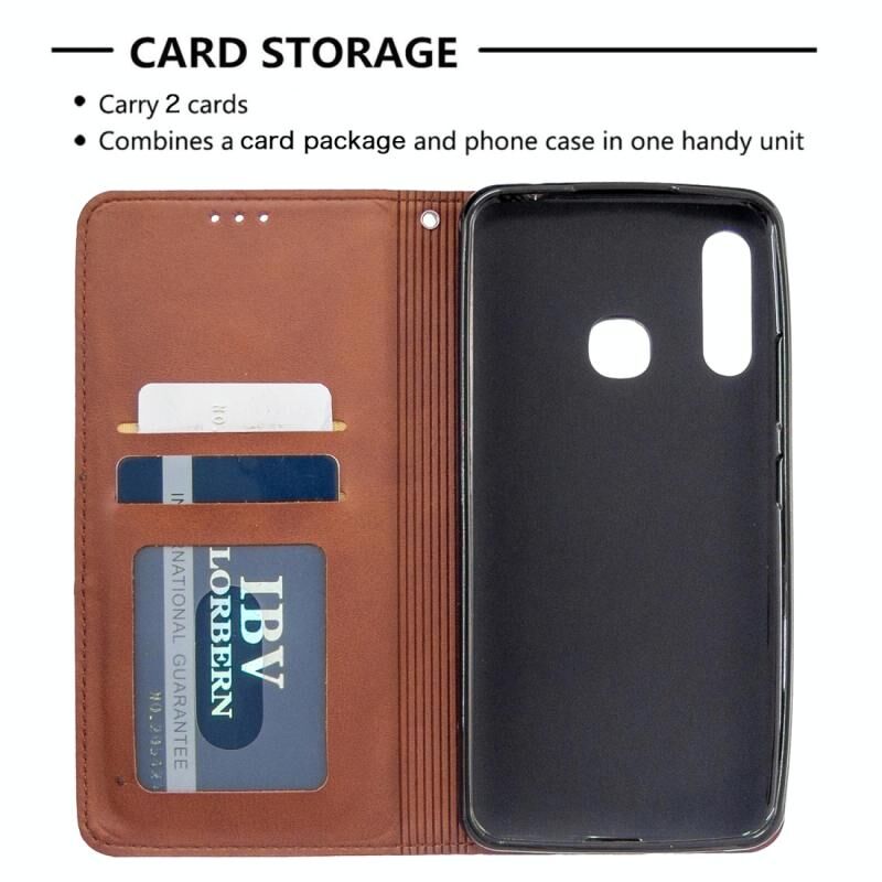 Για Galaxy A70e Rhombus υφή οριζόντια Flip μαγνητική δερμάτινη θήκη με κάτοχο & υποδοχές για κάρτες & πορτοφόλι (καφέ)