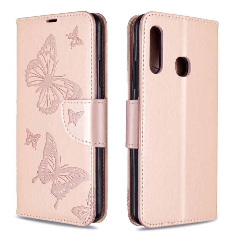 Θήκη δέρματος οριζόντιας αναδίπλωσης για Galaxy A70e με σχέδιο δύο πεταλούδων σε ανάγλυφο, με βάση & υποδοχή κάρτας & πορτοφόλι & κορδόνι (Πράσινο)