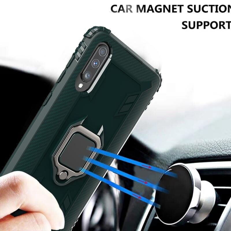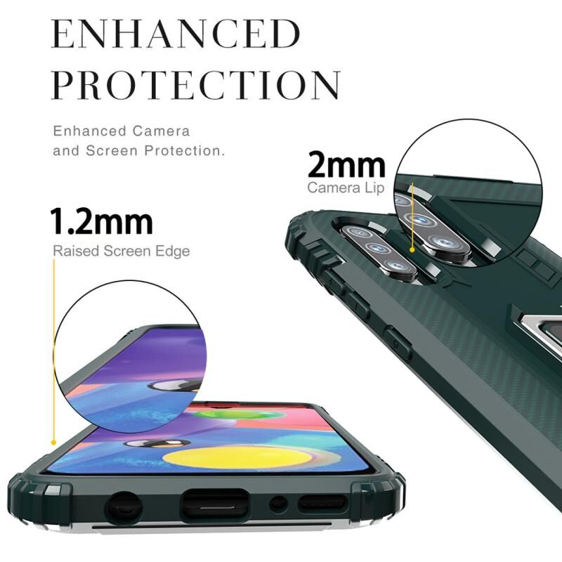 Για Galaxy A70s Carbon Fiber Προστατευτική θήκη με 360 μοίρες περιστρεφόμενη θήκη δακτυλίου (πράσινο)