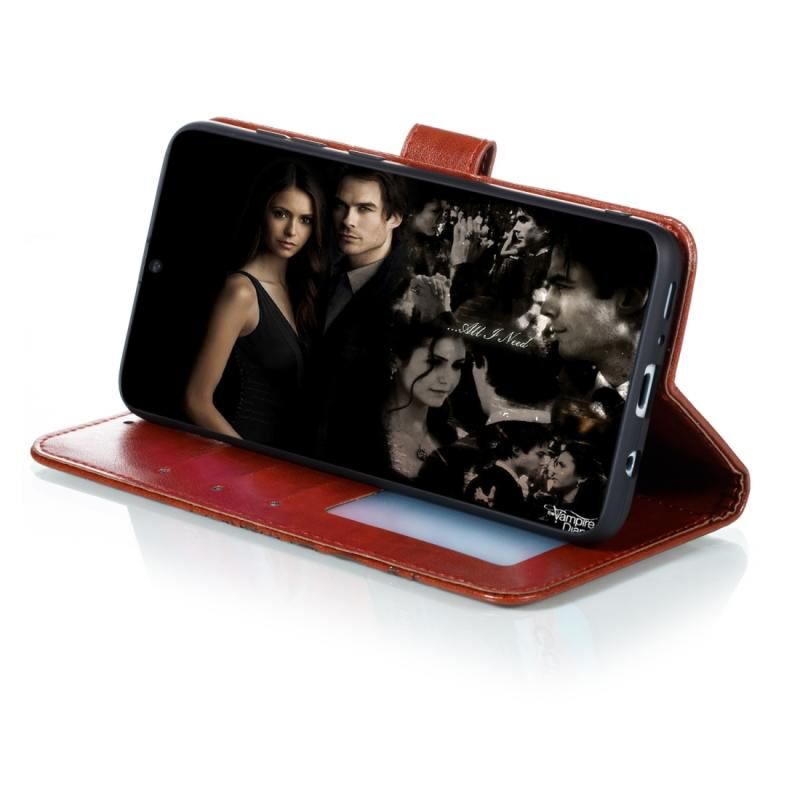 Θήκη βιβρίου από δέρμα με οριζόντιο άνοιγμα για Galaxy A70s με σχέδιο Mandala σε ανάγλυφο, με βάση, θήκες για κάρτες, πορτοφόλι, κορνίζα φωτογραφιών και κορδόνι (Καφέ)