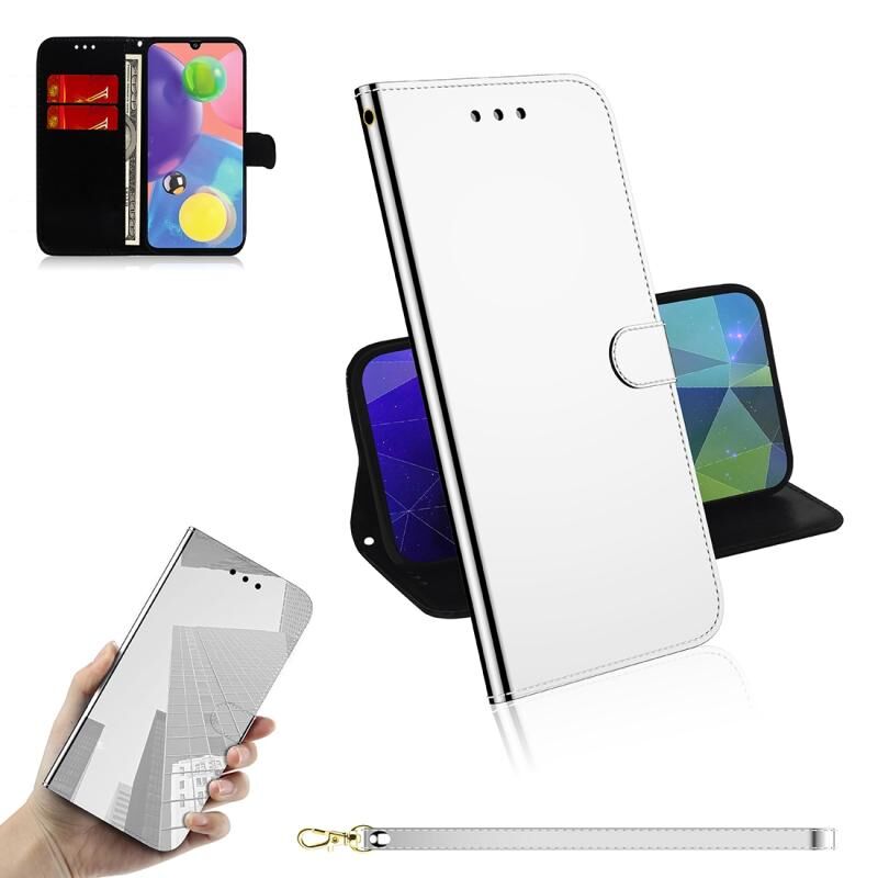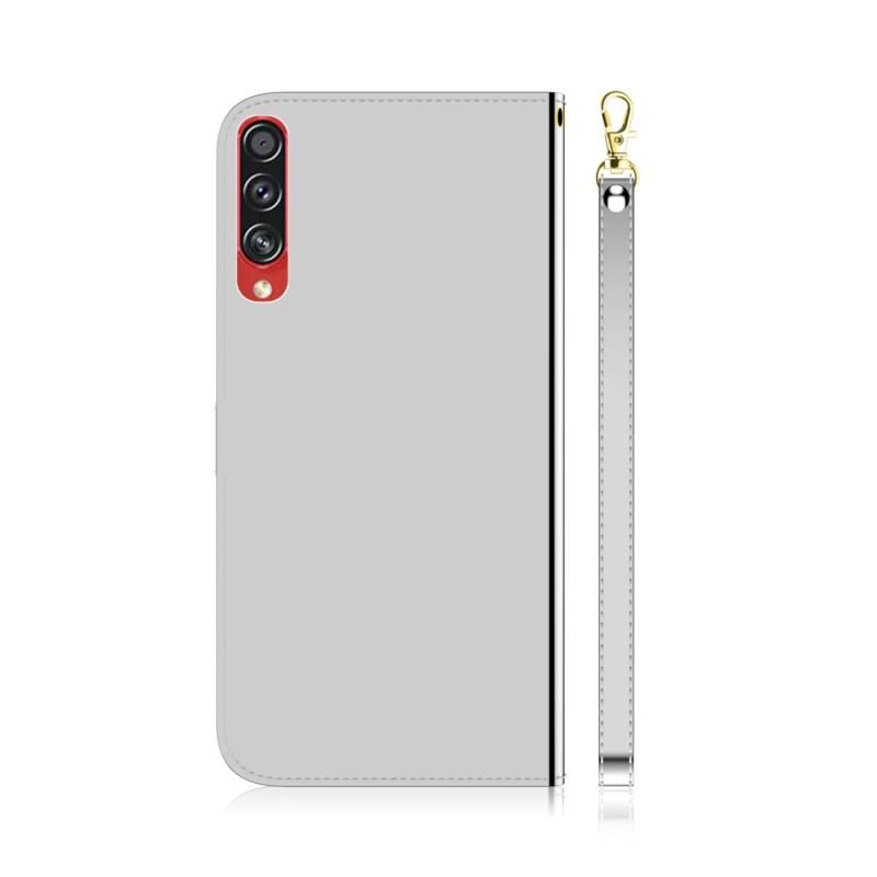 Για Galaxy A70s Mirror-like μαγνητική έλξη οριζόντια Flip δερμάτινη θήκη με κορδόνι, Υποστήριξη κάτοχος & υποδοχή για κάρτες & πορτοφόλι (Ασημί)