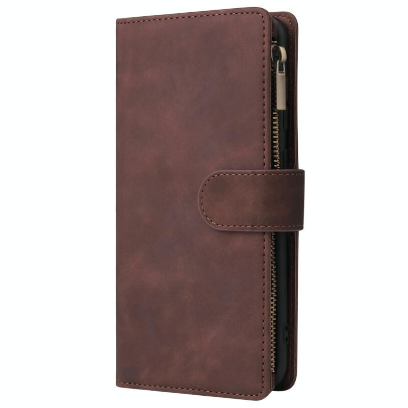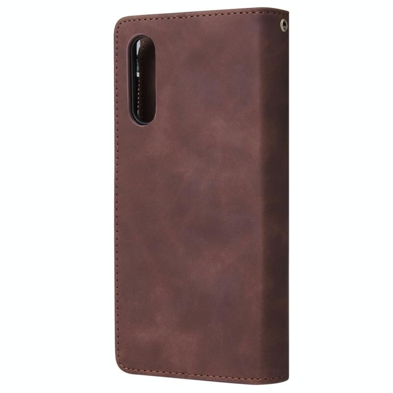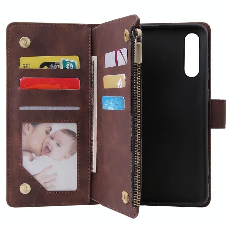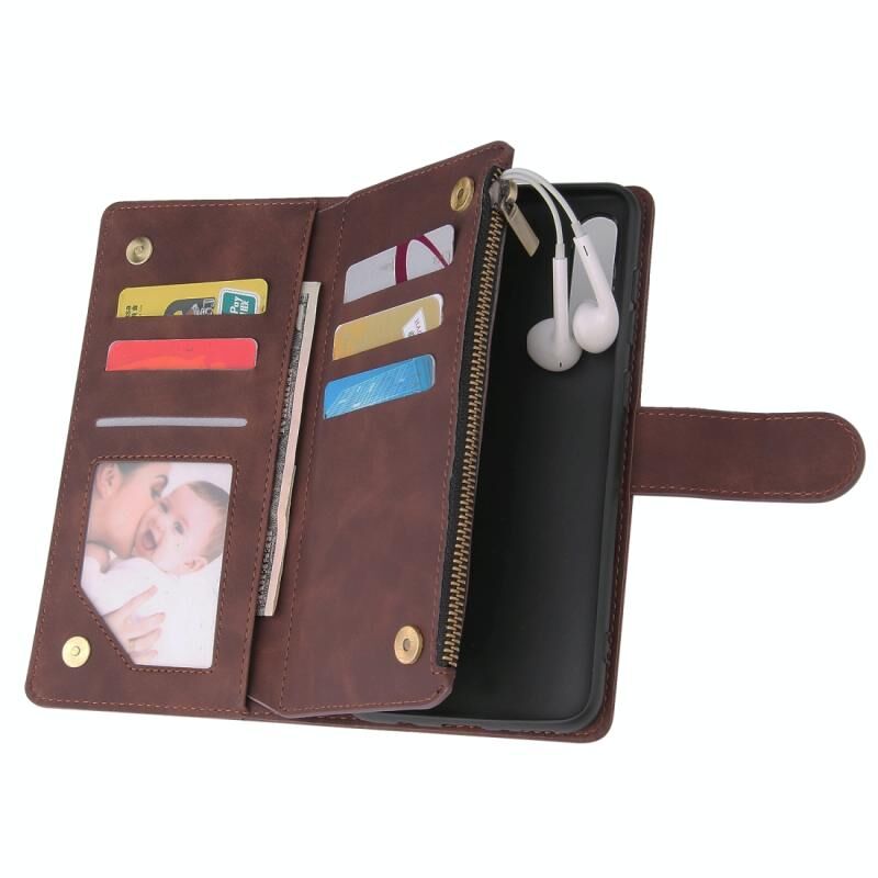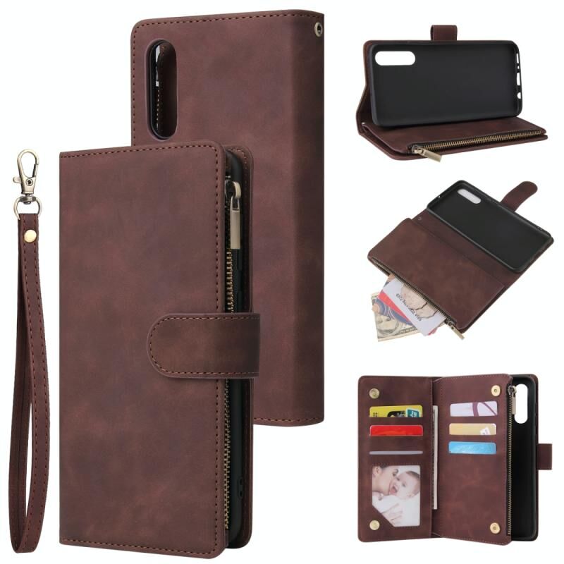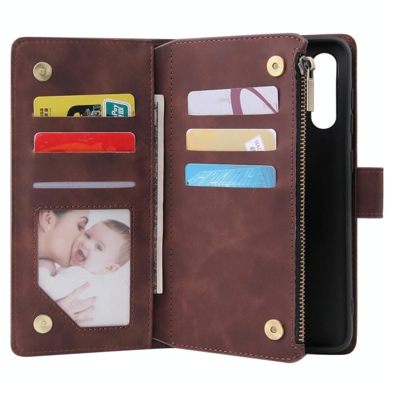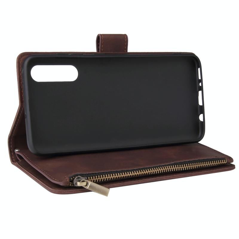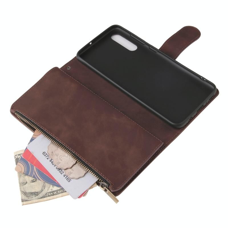 Για Galaxy A70S Πολυλειτουργική οριζόντια Flip δερμάτινη θήκη, με υποδοχή κάρτας & θήκη & φερμουάρ πορτοφόλι & κορνίζα φωτογραφιών (καφέ)