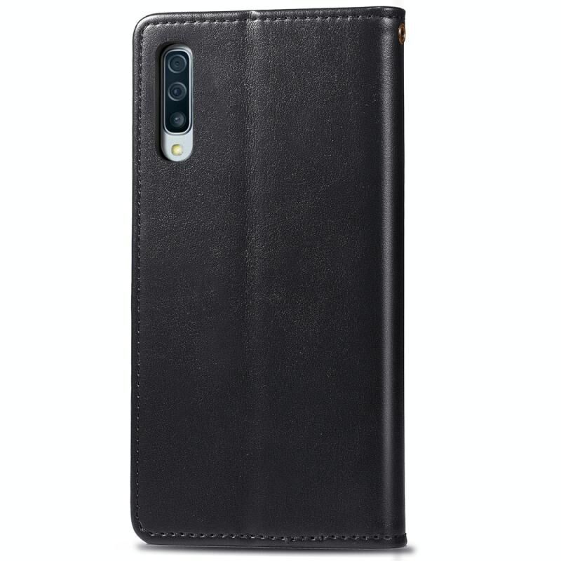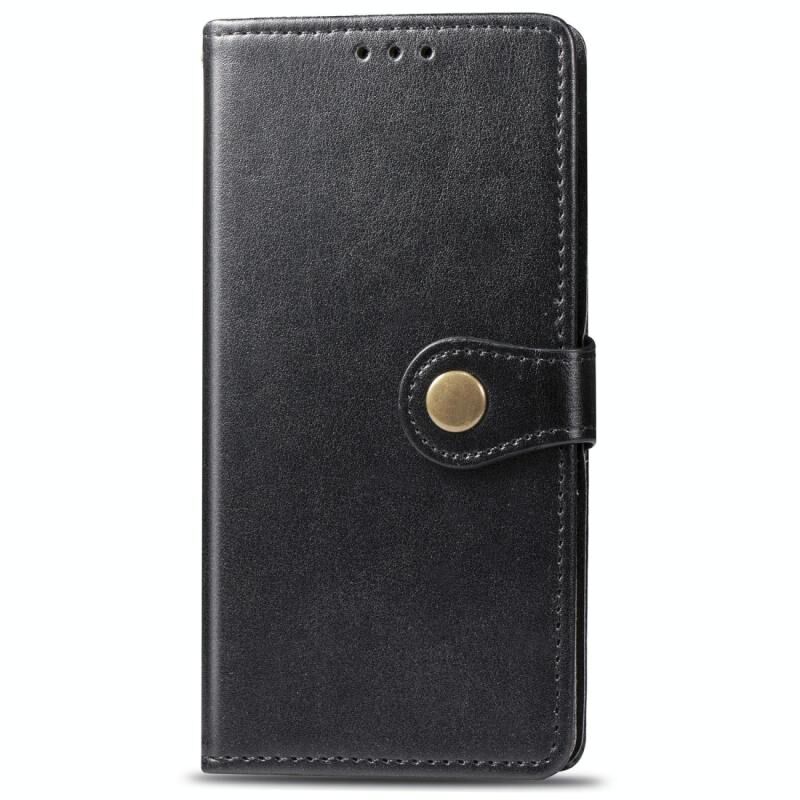 Για Galaxy A70s Ρετρό Αμιγές χρώμα δερμάτινη θήκη τηλεφώνου με αγκράφα & κορνίζα φωτογραφιών & υποδοχή κάρτας & πορτοφόλι & λειτουργία stand (μαύρο)