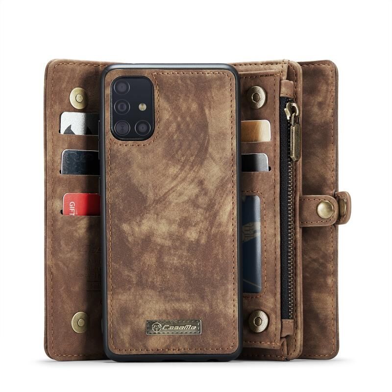 Θήκη για Galaxy A71 4G CaseMe-008 αποσπώμενη πολυλειτουργική οριζόντια δερμάτινη θήκη με υποδοχή κάρτας & βάση στήριξης & πορτοφόλι με φερμουάρ & κορνίζα φωτογραφιών (Μπλε) (Καφέ)