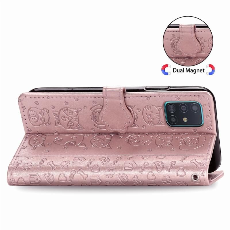 Για Galaxy A71 5G Χαριτωμένη Θήκη Δέρματος Οριζόντιας Αναδίπλωσης με ανάγλυφα σχέδια Γάτας και Σκύλου με Στήριγμα / Θήκη Κάρτας / Πορτοφόλι / Λουρί (Ροζ)