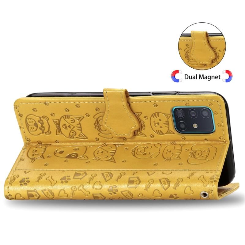 Για Galaxy A71 5G Χαριτωμένη Θήκη Δέρματος Οριζόντιας Αναδίπλωσης με ανάγλυφα σχέδια Γάτας και Σκύλου με Στήριγμα / Θήκη Κάρτας / Πορτοφόλι / Λουρί (Κίτρινο)