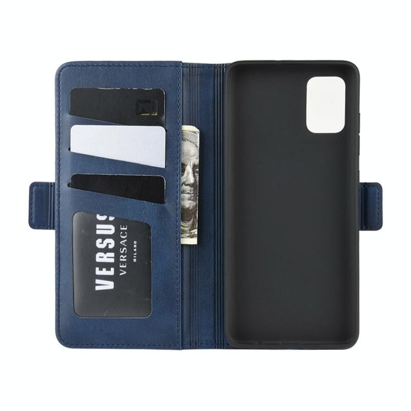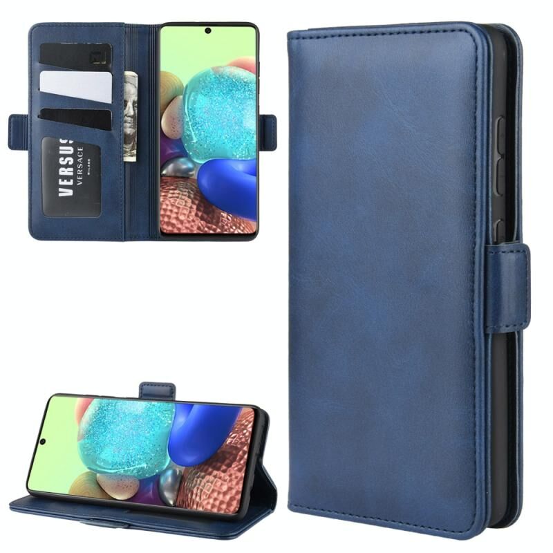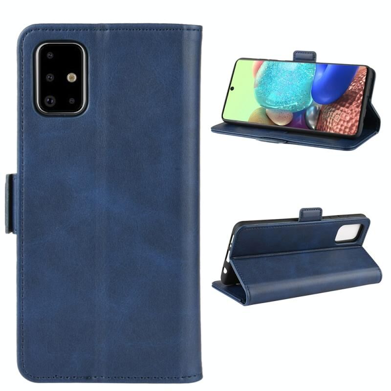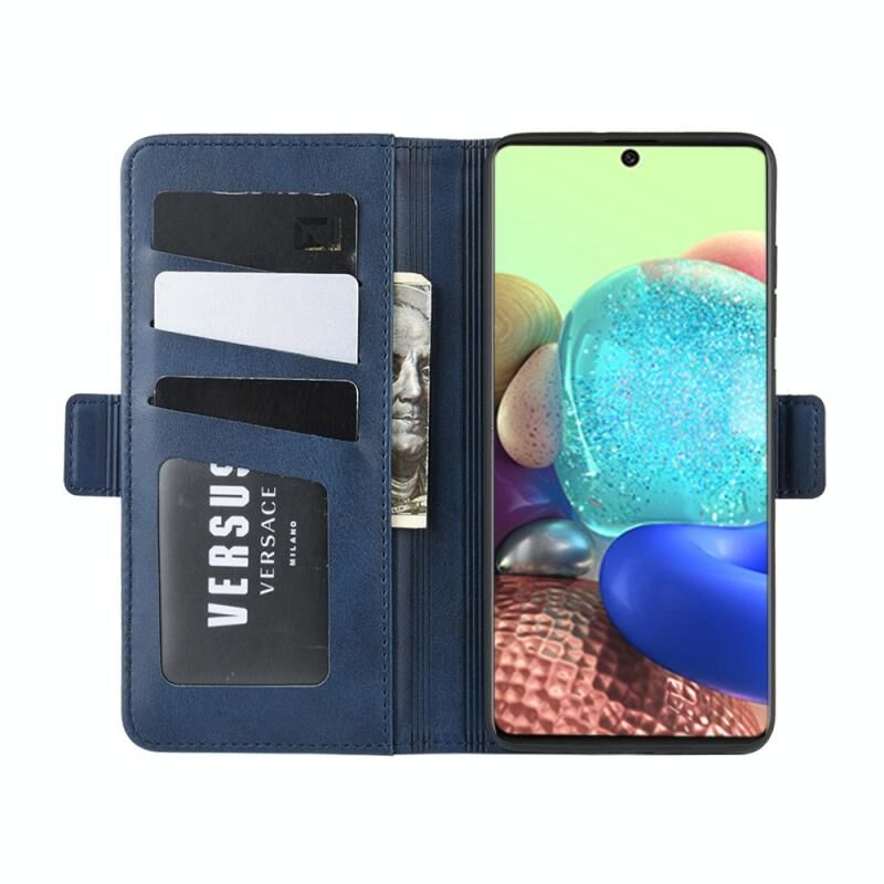 Για Galaxy A71 5G Διπλής όψης μαγνητική αγκράφα οριζόντια Flip δερμάτινη θήκη με θήκη & υποδοχές για κάρτες & πορτοφόλι (σκούρο μπλε)