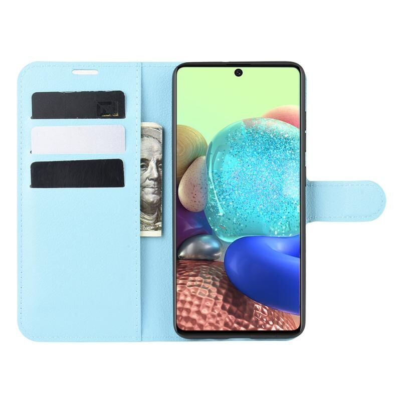 Για Galaxy A71 5G Litchi Υφή Οριζόντια Flip Προστατευτική θήκη με θήκη & υποδοχές για κάρτες & πορτοφόλι (Μπλε)