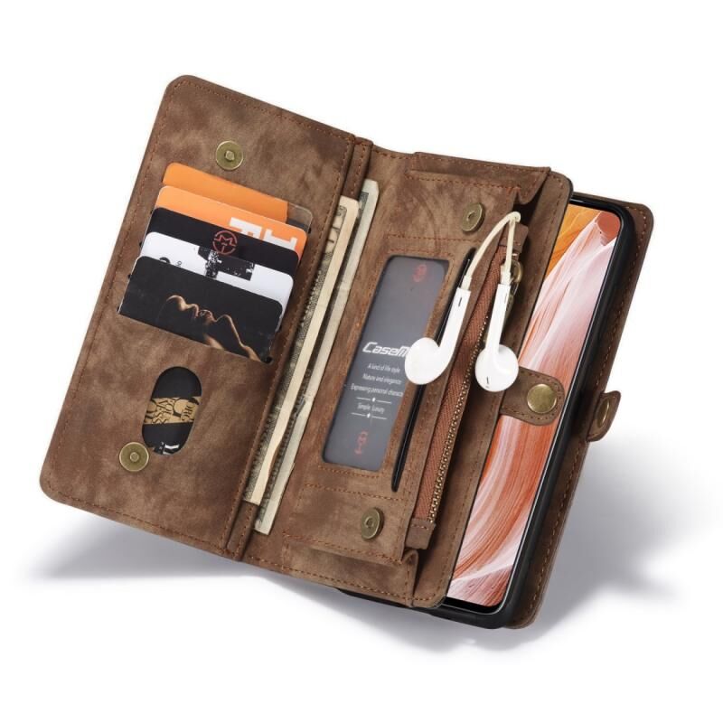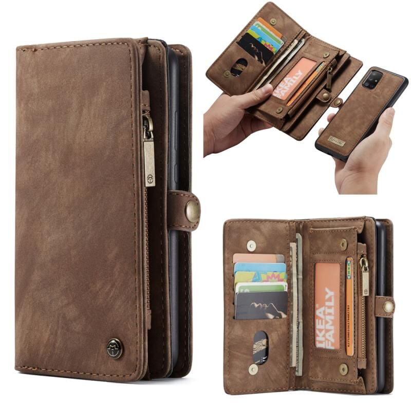 Θήκη CaseMe αποσπώμενη πολυλειτουργική οριζόντια δερμάτινη θήκη για Galaxy A71, με θήκη για κάρτες & στήριξη & πορτοφόλι με φερμουάρ & κορνίζα φωτογραφιών (Κόκκινο) (Καφέ)
