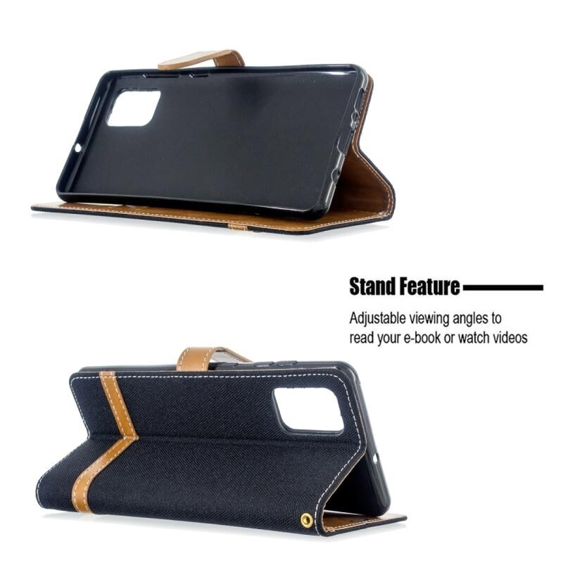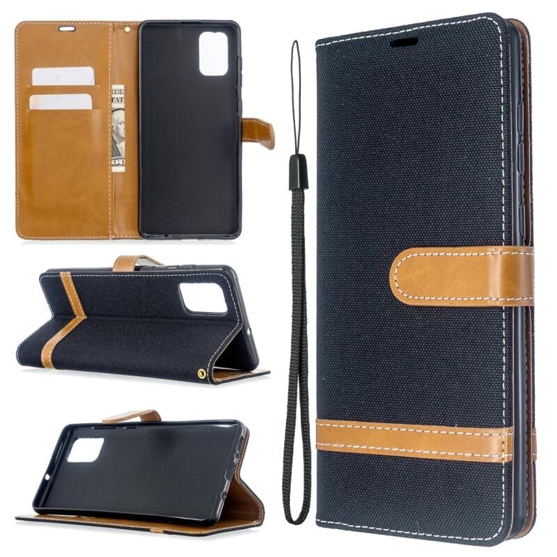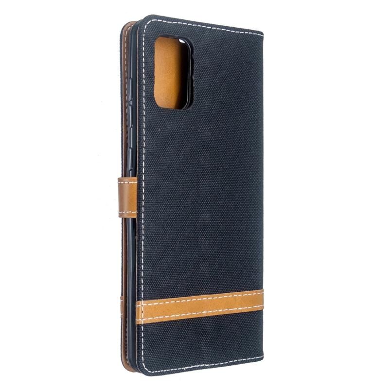 Για το Galaxy A71 Χρώμα ταιριάζει με Denim υφή οριζόντια Flip PU δέρμα υπόθεση με θήκη & υποδοχές για κάρτες & πορτοφόλι & κορδόνι (Μαύρο)
