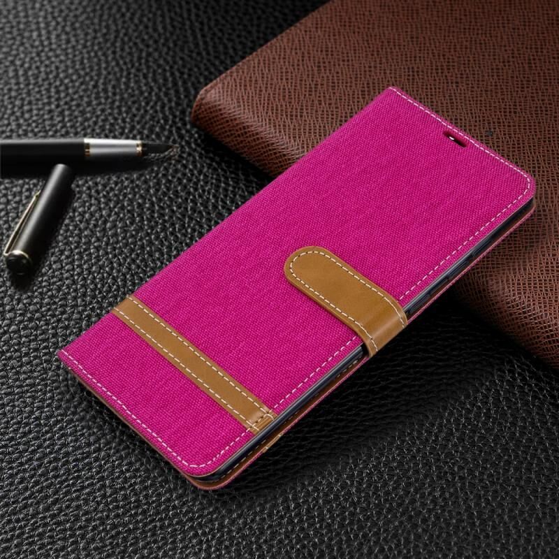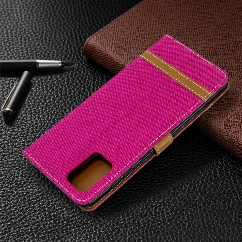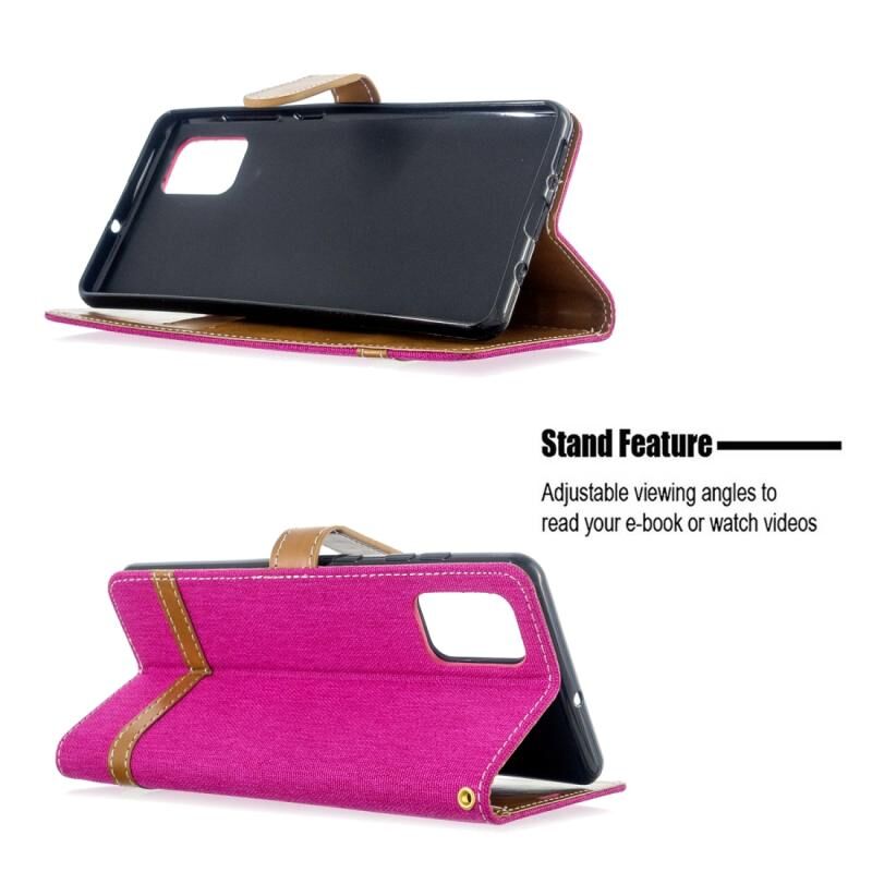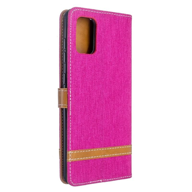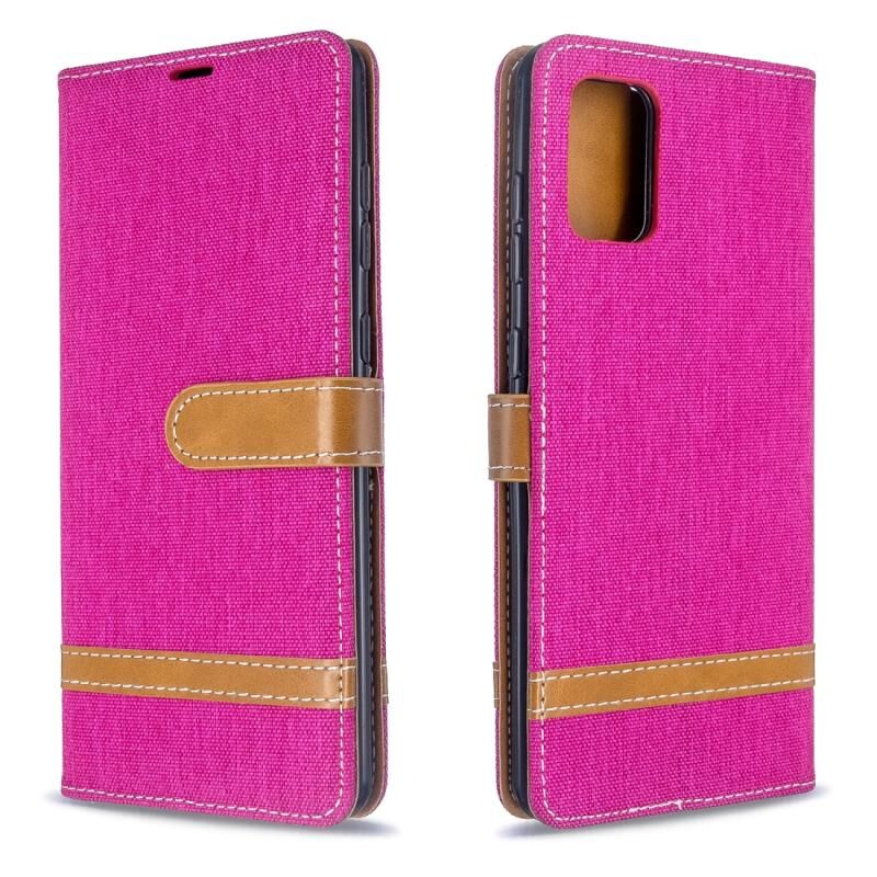 Για Galaxy A71 Χρώμα ταιριάζει με Denim υφή οριζόντια Flip PU δέρμα υπόθεση με θήκη & υποδοχές για κάρτες & πορτοφόλι & κορδόνι (Rose Red)