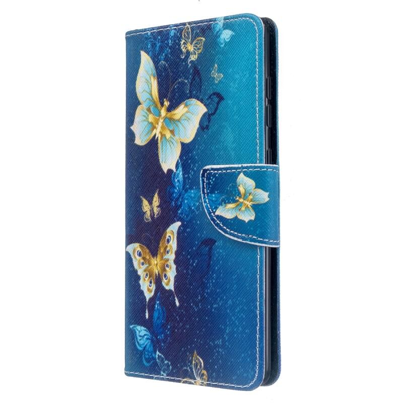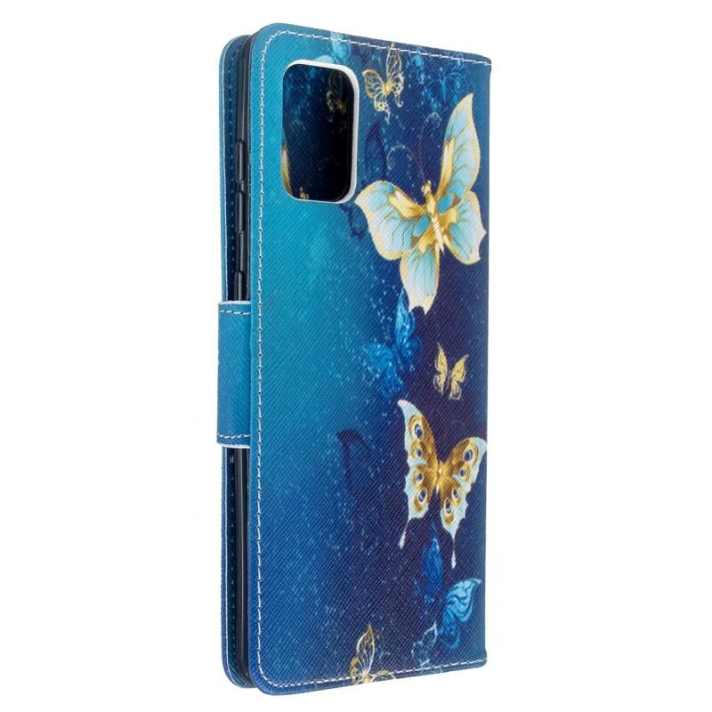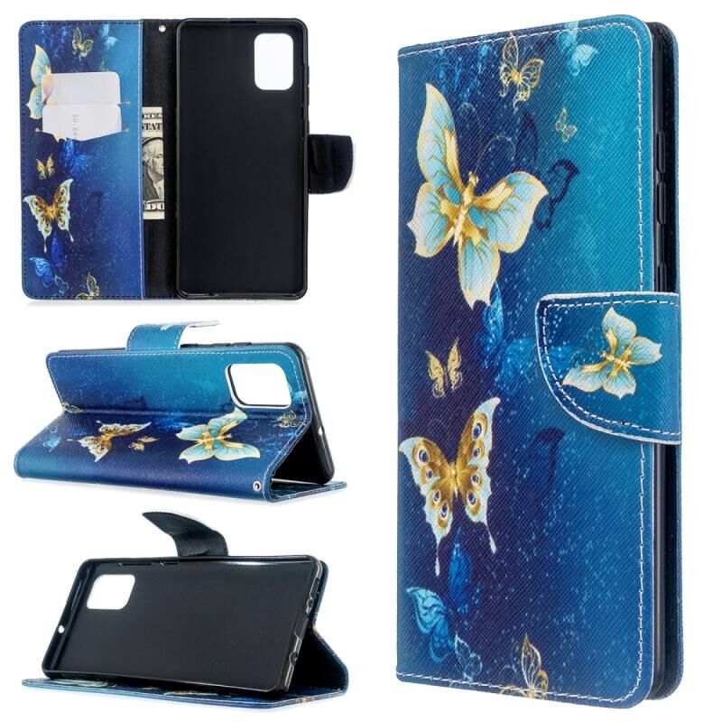 Θήκη δέρματος οριζόντιας αναδίπλωσης με σχέδιο πολύχρωμης ζωγραφικής για Galaxy A71 με βάση & υποδοχές καρτών & πορτοφόλι (Μπλε πεταλούδα)