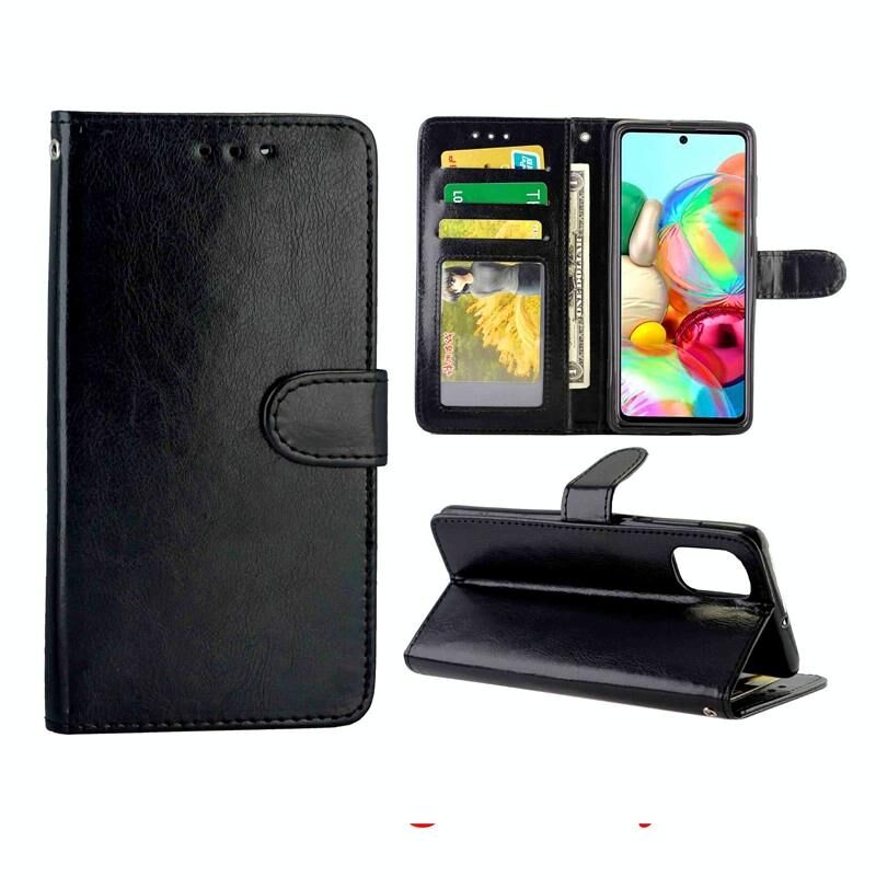 Για το Galaxy A71 Crazy Horse Texture δέρμα οριζόντια Flip προστατευτική θήκη με υποδοχές για κάρτες & θήκες & πορτοφόλι & κορνίζα φωτογραφιών (Μαύρο)