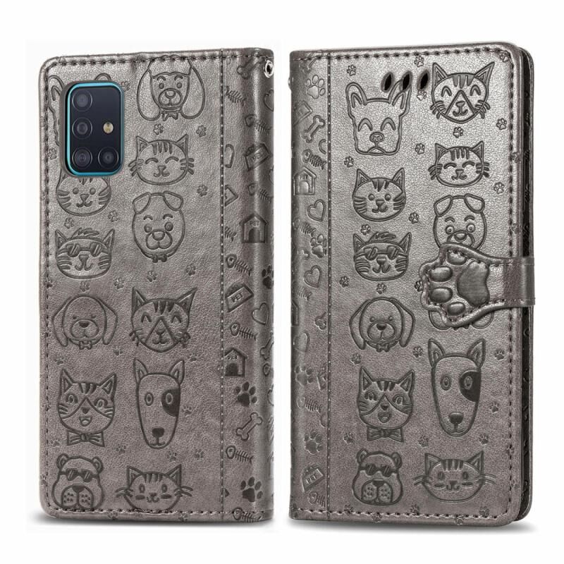Θήκη δέρματος οριζόντιας αναδίπλωσης με ανάγλυφα σχέδια χαριτωμένων γάτας και σκύλου για Galaxy A71, με βάση στήριξης / υποδοχή κάρτας / πορτοφόλι / κορδόνι (Ροζ)