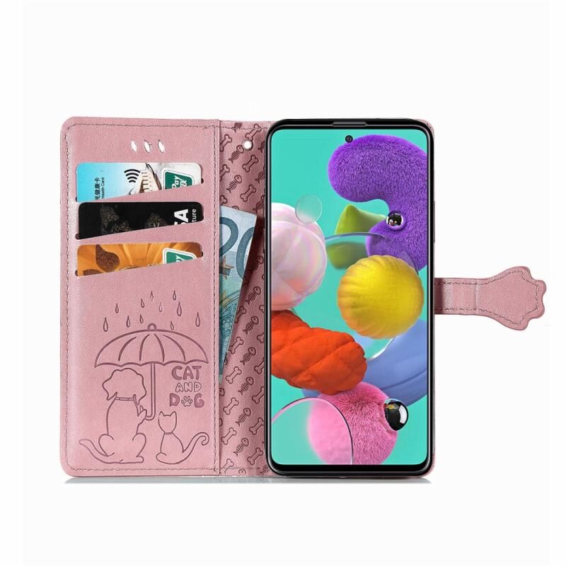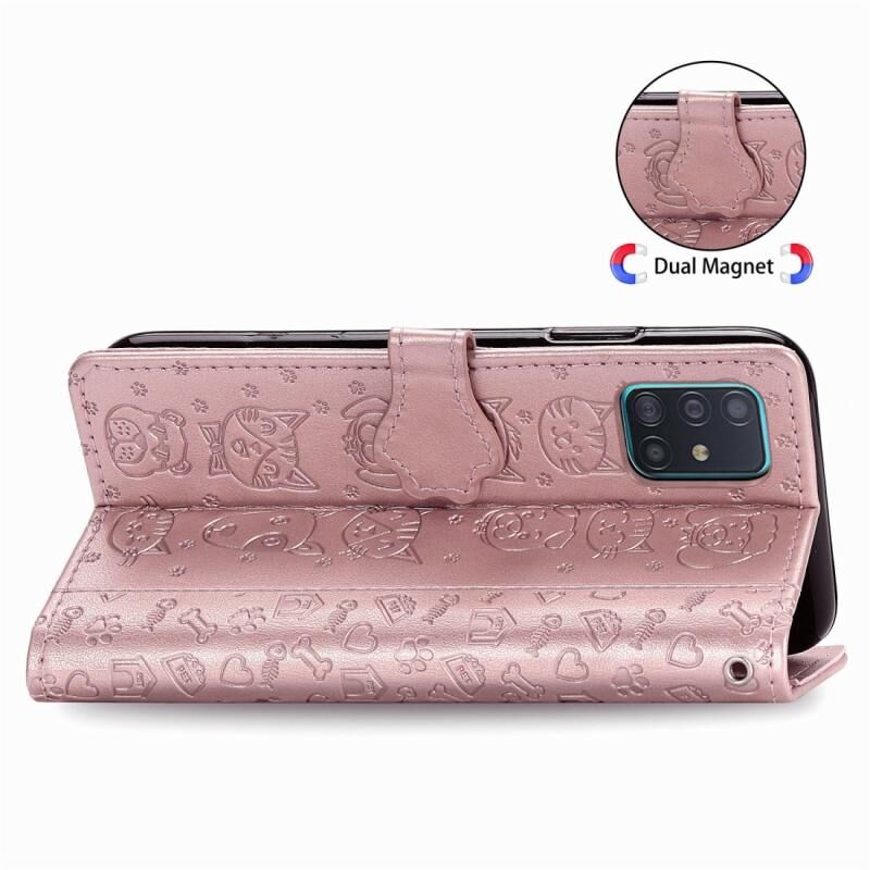 Θήκη δέρματος οριζόντιας αναδίπλωσης με ανάγλυφα σχέδια χαριτωμένων γάτας και σκύλου για Galaxy A71, με βάση στήριξης / υποδοχή κάρτας / πορτοφόλι / κορδόνι (Χρυσό)